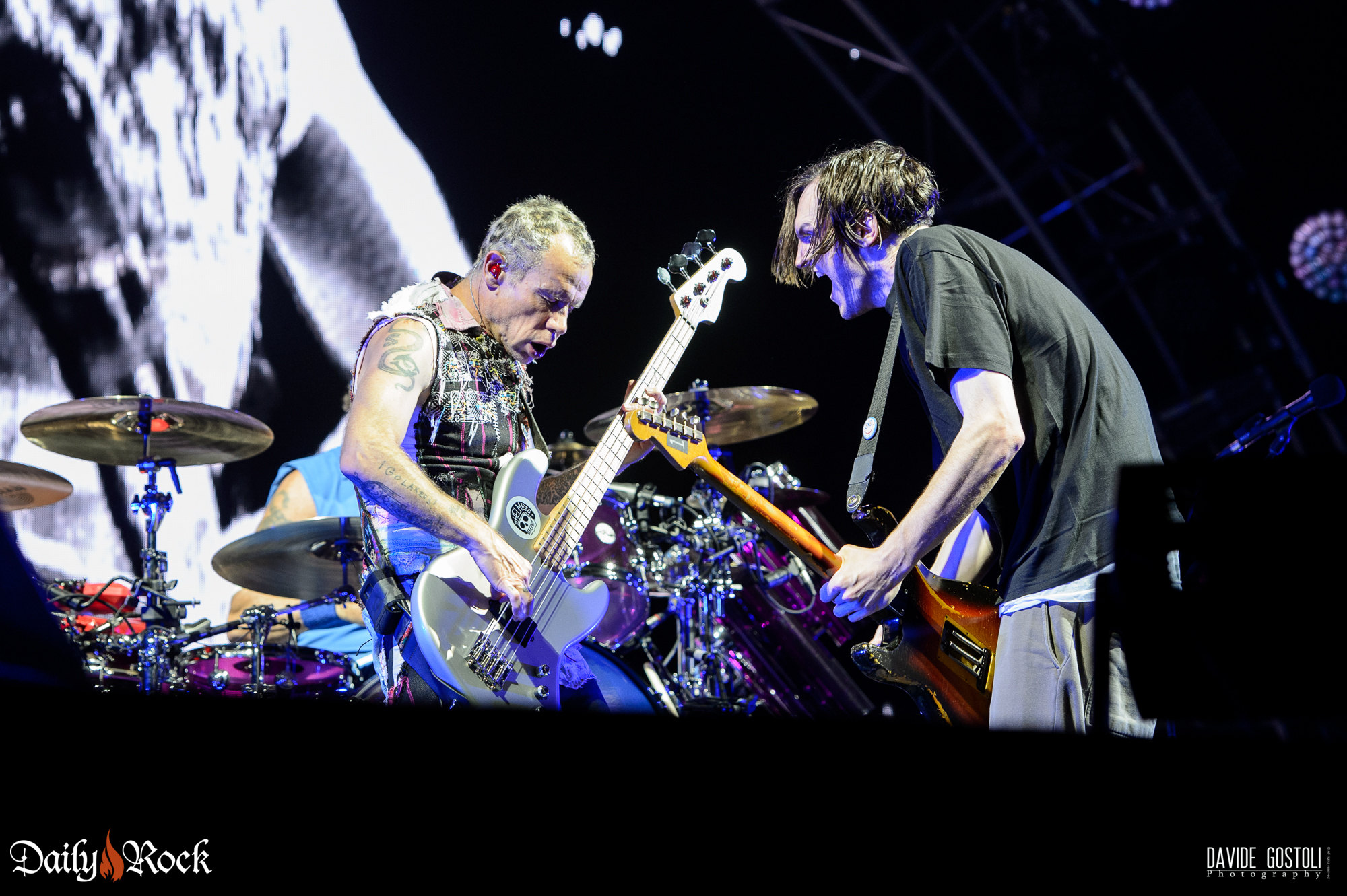 Pendant ce temps, sur la Grand Scène, les Red Hot sont attendus avec impatience. Auparavant chauffé par le duo français The Inspector Cluzo, avec leur gros funk/rock et leur humour satirique (« Nous au moins on joue en live pas comme ces DJ! ») et l’indie rock mélodieux des Anglais de Foals qui ont délivré une performance sombre et énergique, un public de 40’000 personnes ont assisté à la prestation pimentée du groupe légendaire californien.
