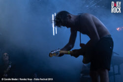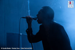 Tandis que les fans de rap se dirigent en masse vers la grande scène pour Lomepal, on continue notre soirée rock avec Rendez Vous (sans trait d’union s’il vous plaît) au Détour. C’est une frappe en plein visage dès le premier morceau, une claque énergétique qui déferle sur le public et emporte tout sur son passage, en accord avec le temps qui fait des sienne jusque sous le chapiteau. Pour ce concert, on reste dans l’univers coldwave / postpunk mais avec une fougue et une agressivité à réveiller les morts. Rendez Vous envoie du lourd et du sombre. C’est bon, on est réveillés pour le reste de la soirée.