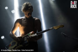On avance au ralenti lorsqu’on arrive sur la Plaine de l’Asse. Le ciel se couvre peu à peu et l’atmosphère est lourde lorsque Rolling Blackouts Coastal Fever montent sur la Grande Scène. Les Australiens déversent un ‘surf-rock’ frais et pêchu. On se dandine volontiers d’un pied à l’autre mais on se lasse malheureusement de ces mélodies trop répétitives.