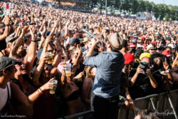 Le duo fait également le show, que ce soit en venant faire de la batterie sur le public ou en grimpant sur une petite plateforme perchée à plusieurs mètres de hauteur à côté de la scène. En plus, ils ne se sont pas contentés de remercier les sécus pour leur travail, mais ils les ont fait participer au spectacle. Tout d’abord, dans une ambiance « dance cam » comme dans les matchs de basket, les sécus ont un à un proposé quelques mouvements de danse pour la chanson suivante. Puis, ils ont été invités sur scène pour guider la foule de droite à gauche en rythme. Ce sera sûrement la seule fois qu’on verra la sécurité créer un mouvement de foule ! Les « haters » diront ce qu’ils veulent, avec Twenty Øne Piløts, Paléo a vu gros, et Paléo a vu juste.