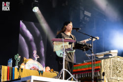 Si vous pensiez que la musique de Charlotte Gainsbourg était un peu molle détrompez-vous. Avec son dernier album Rest, Charlotte conserve sa douce fragilité mais ajoute une bonne dose de pèche électro qui a dû en dérouter certains. Elle assume enfin pleinement son héritage sans pour autant emprunter le style de son père. Si l’album sort du lot, le live en est à la hauteur. La scénographie minimaliste, faite de structures en néon accueille l’artiste au piano, et porte la voix éthérée, en anglais. Elle nous plonge dans un espace hors du temps alternant entre puissance dès que la musique commence et douceur dès qu’elle s’arrête. Le volume vocal est peut-être un peu faible, mais soutenu par le choriste et le bel équilibre musical, le concert est probablement le meilleur de la soirée. Une belle performance, entretenue par l’interprétation de Charlotte Forever. L’émotion est palpable lorsqu’elle s’adresse au public après celle-ci. Un très bel hommage et un concert à la hauteur d’une artiste. Dommage que le public ne puisse s’empêcher de discuter et rire aux éclats, brisant cette bulle crée par Charlotte Gainsbourg.