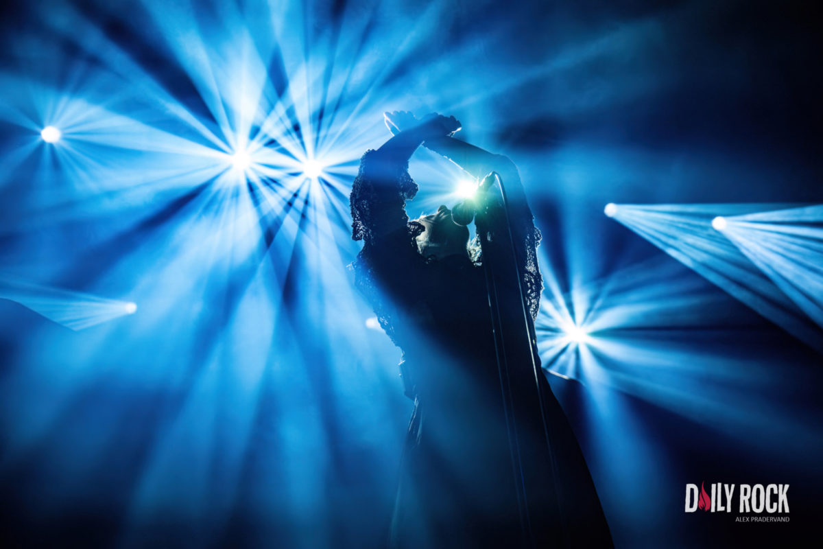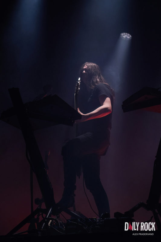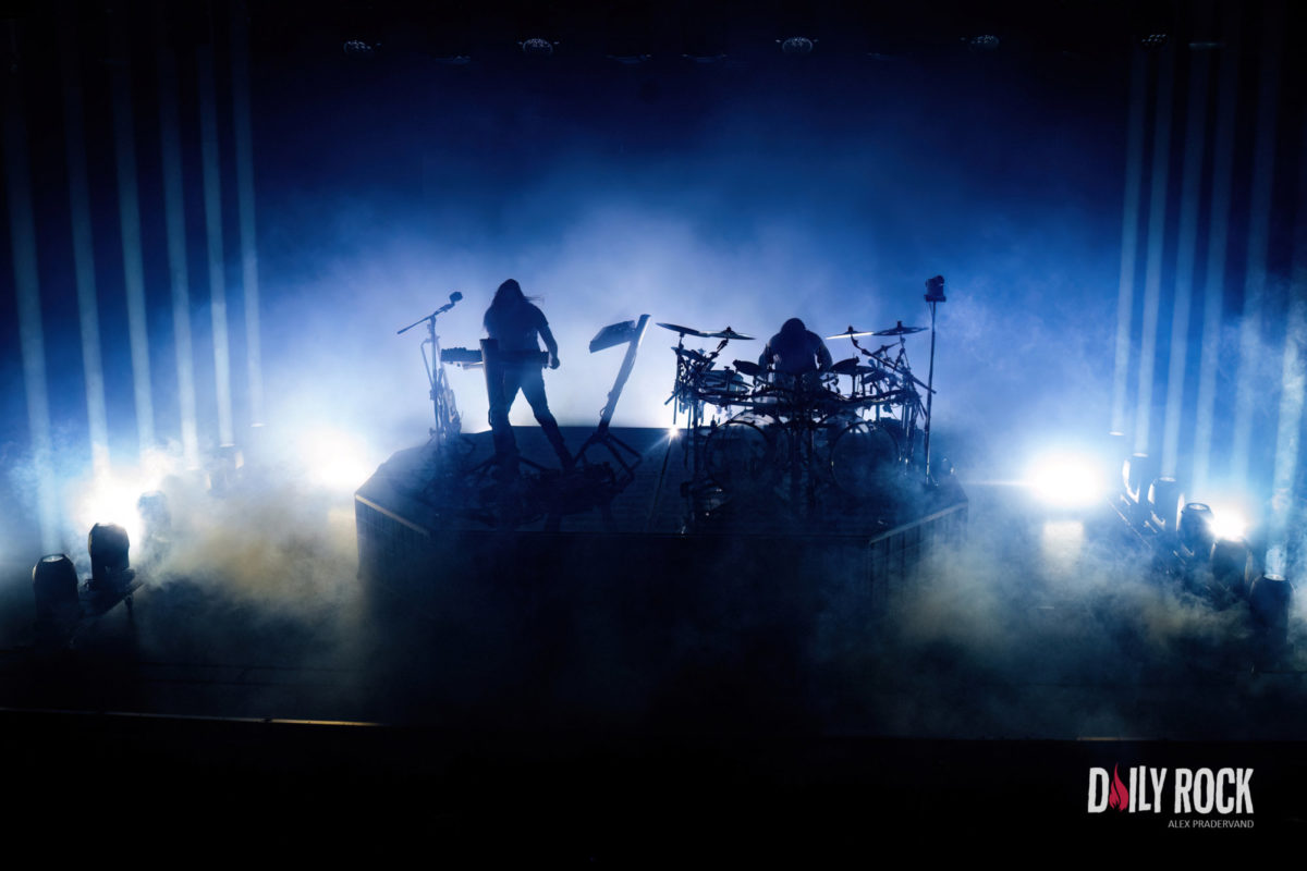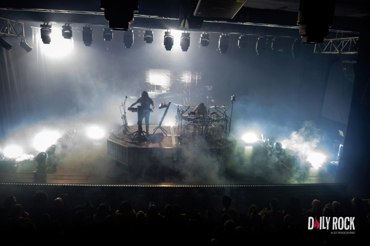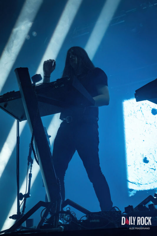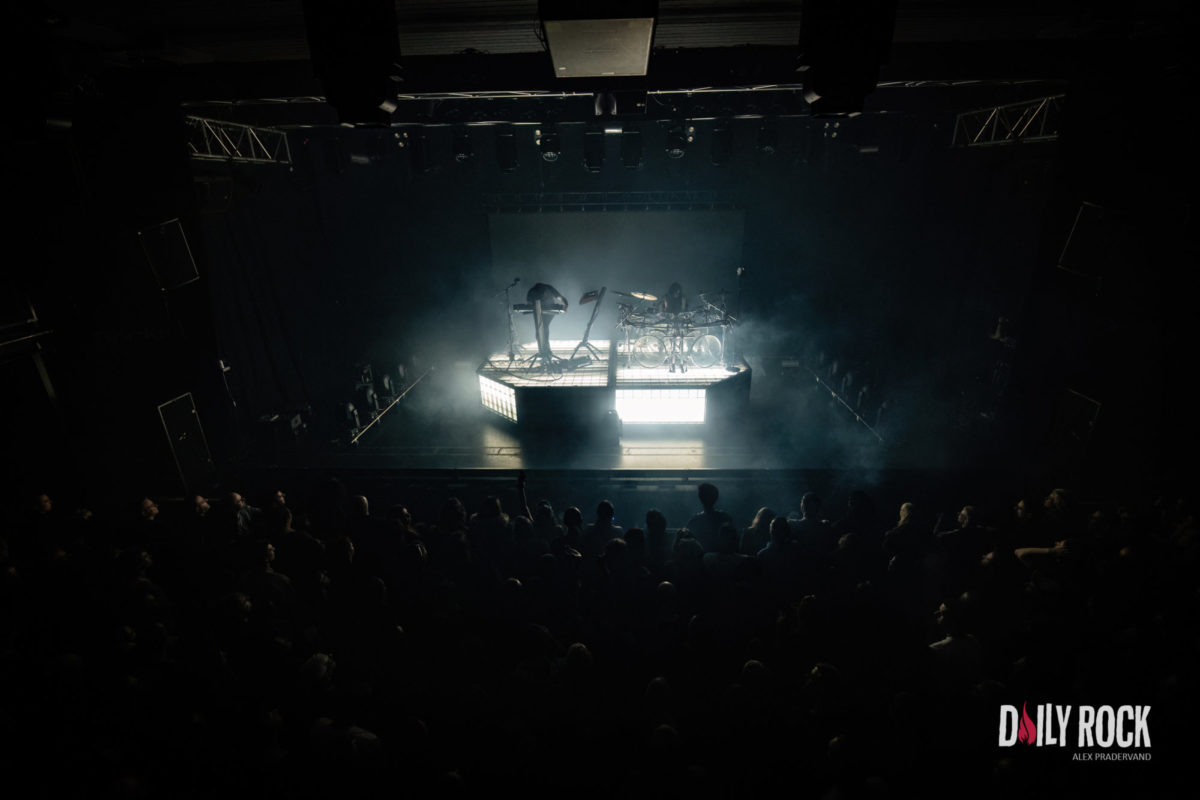 Pertubator en live, c’est une expérience à vivre ! Plein les yeux et les oreilles, en particulier grâce à la rangée de lights posée sur la scène face au public. Il y avait de quoi faire fondre quelques rétines. Perturbator, des concerts qui devraient être organisés en partenariat avec les hopitaux ophtalmiques des villes où ils jouent. Même s’ils ne sont que deux et que le matériel est déjà sur scène, il y a pas mal d’attente jusqu’au début du set. Les musiciens sont installés sur une structure surlevée, ce qui fait que l’on ne voit guère le batteur (mais on l’entend c’est le principal), le tout est entouré d’un lightshow supruissant comme la musique. Le son est vraiment bien dosé, c’est super propre. Et surtout cela envoie ! Aussi impressionant que sur disque pour le plus grand bonheur d’une salle bien remplie.