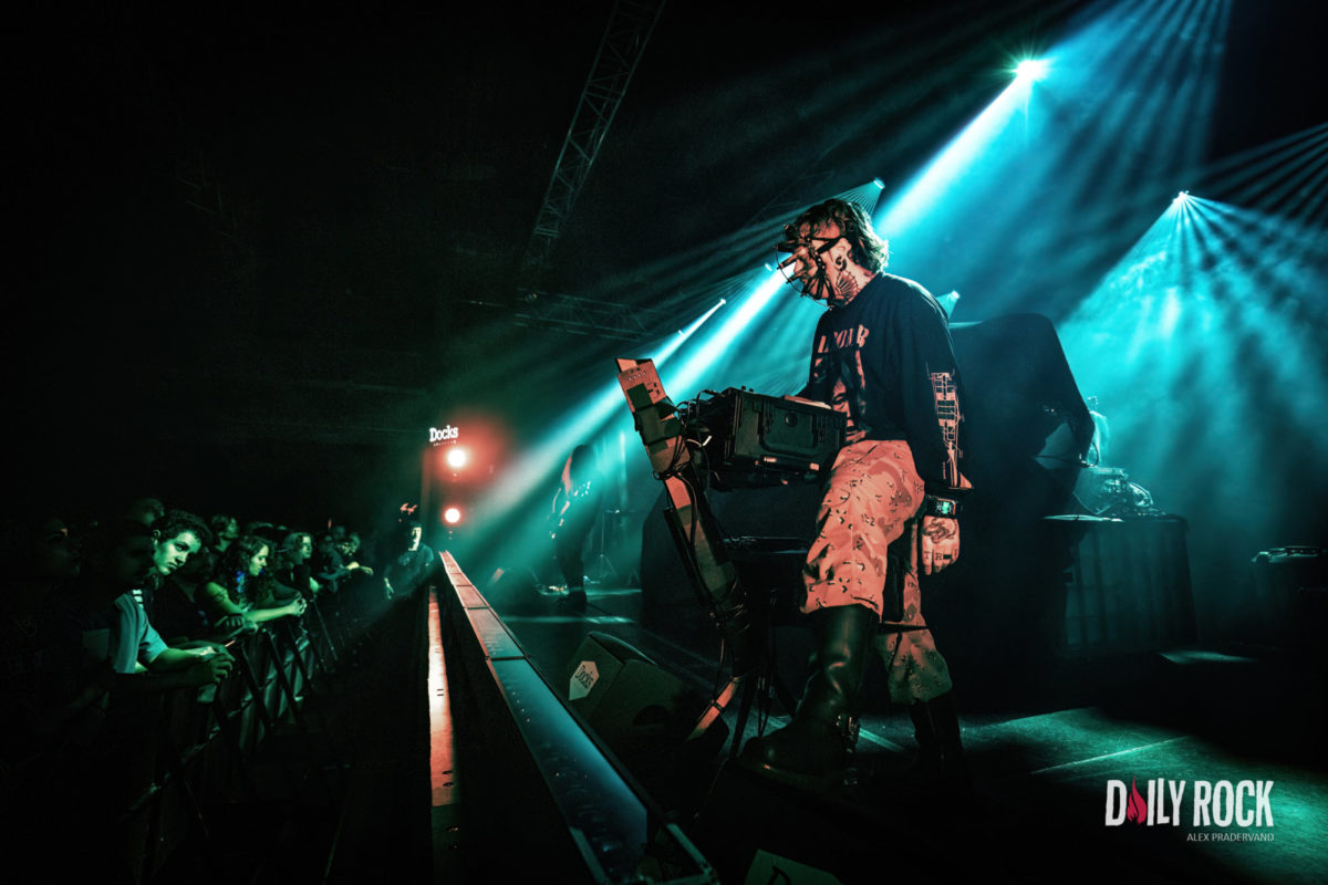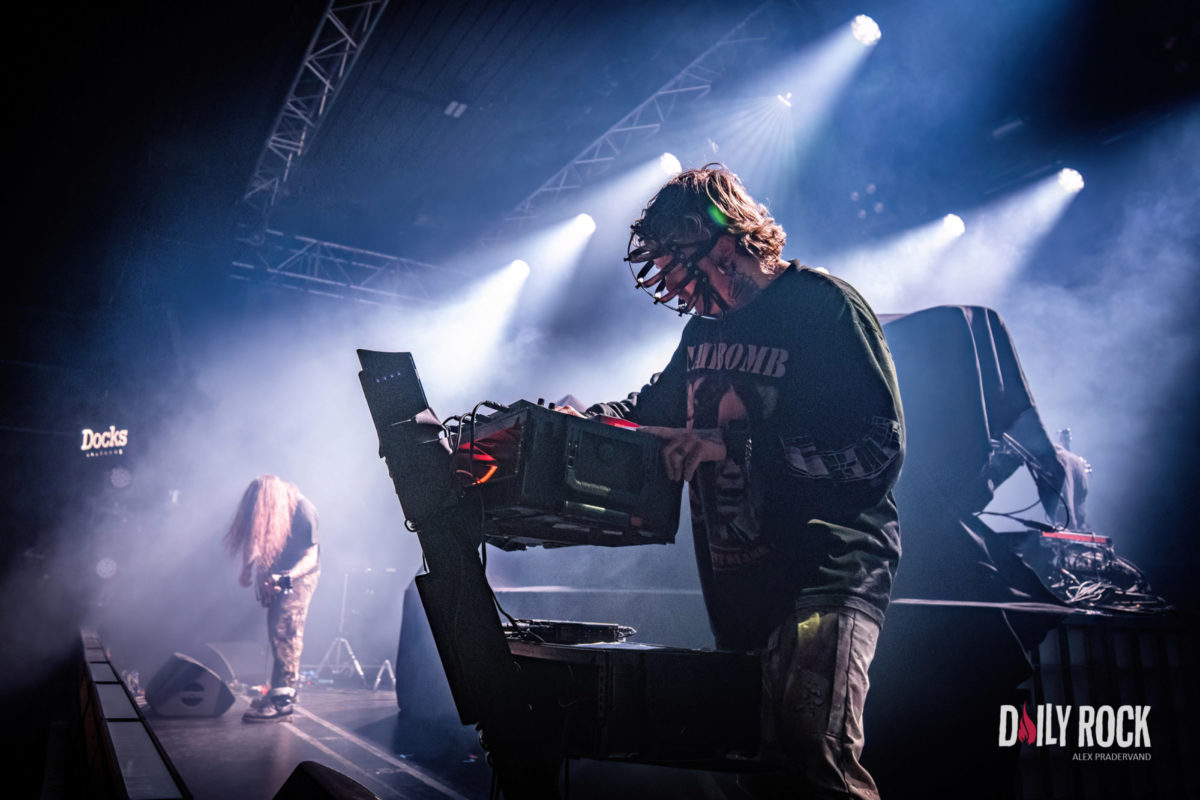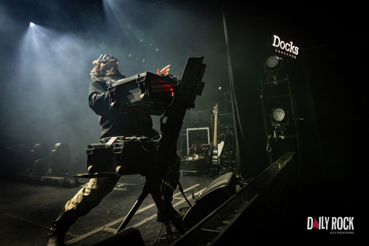 Oubliez les chants de Noël, ce jeudi 4 décembre était dédié à une musique bien plus dark aux Docks de Lausanne. En première place sur l’affiche, le duo américain Gost que je connaissais pas du tout. Quand tu vois le clavier arriver sur scène avec une masque moitié hockey, moitié muselière et un t-shirt de Nailbomb, le side project de Max Cavalera, tu sens que tu vas pas entendre des comptines qui parlent du petit Jesus. Peu d’espace sur scène car le matériel de Pertubator est déjà installé mais cela n’empêche pas un set bien costaud, pas très éloigné de ce que proposeront les français en tête d’affiche plus tard dans la soirée.