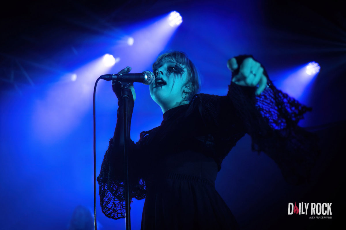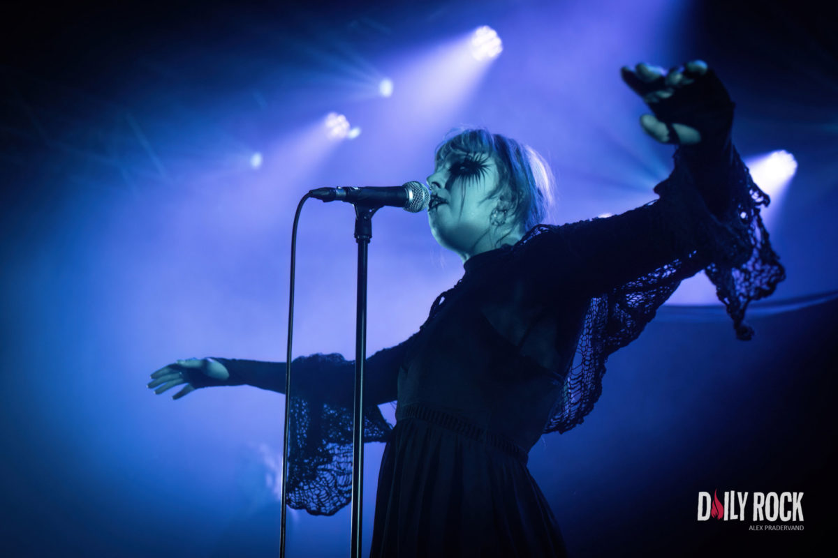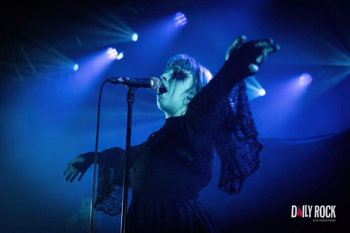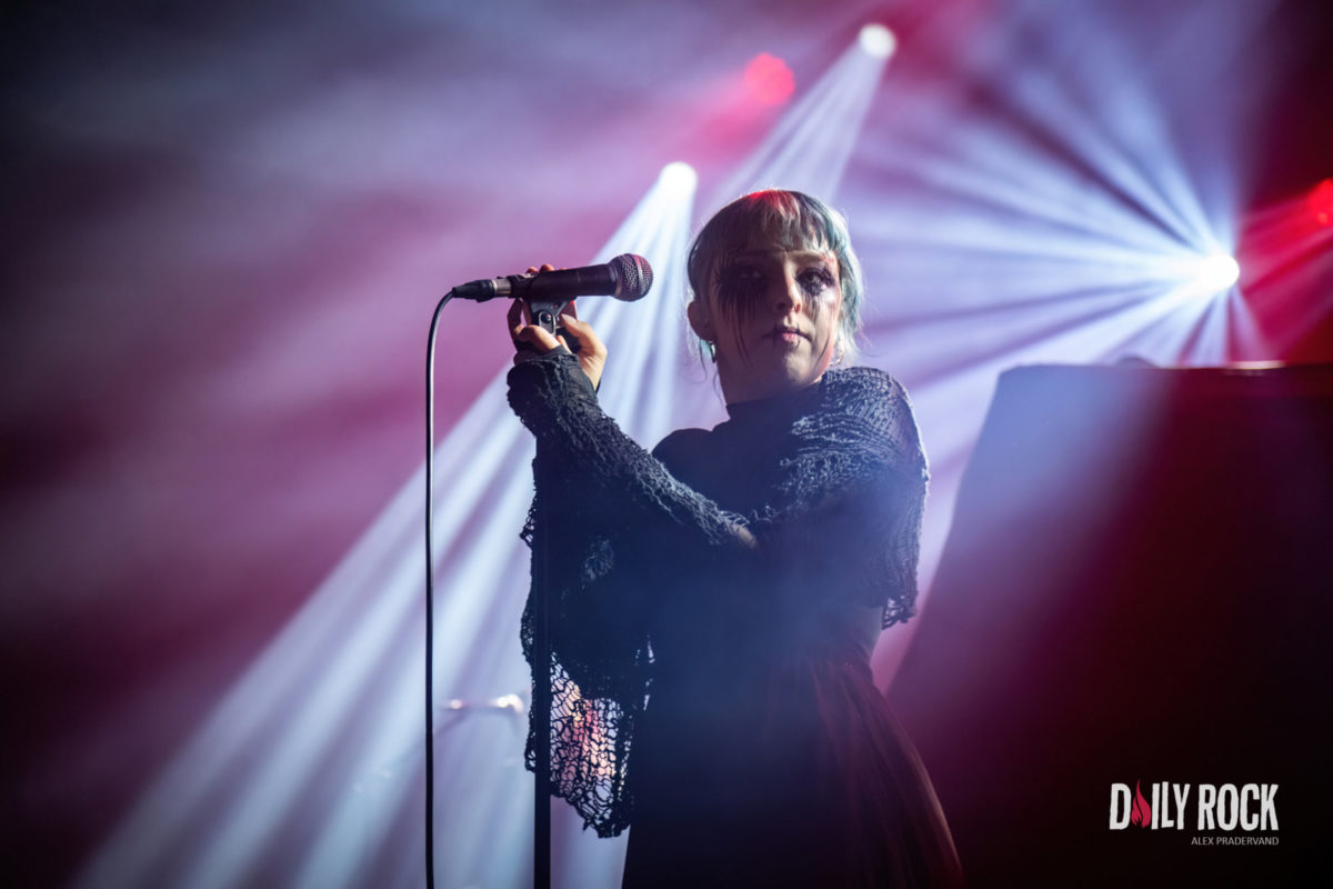 Avant cela, place aux islandaises de Kaelan Mikla. Je dois être un de seuls dans la salle qui est venue principalement pour elles. J’avais beaucoup apprécié leur passage sur la petite scène de Nox Orae lors d’une édition précédente. Musicalement, c’est à des années lumières des deux autres groupes à l’affiche. Les maquillages de type black metal ne trompent personne. Les trois musiciennes livrent une dizaine de chansons empreintes de poésie (en islandais), sur lesquelles la chanteuse oscille entre lignes claires et cris. Il faut attendre la fin du set pour quelques morceaux plus rapides et les remerciements à Gost et Pertubator pour les avoir emmenées en tourner avec eux.