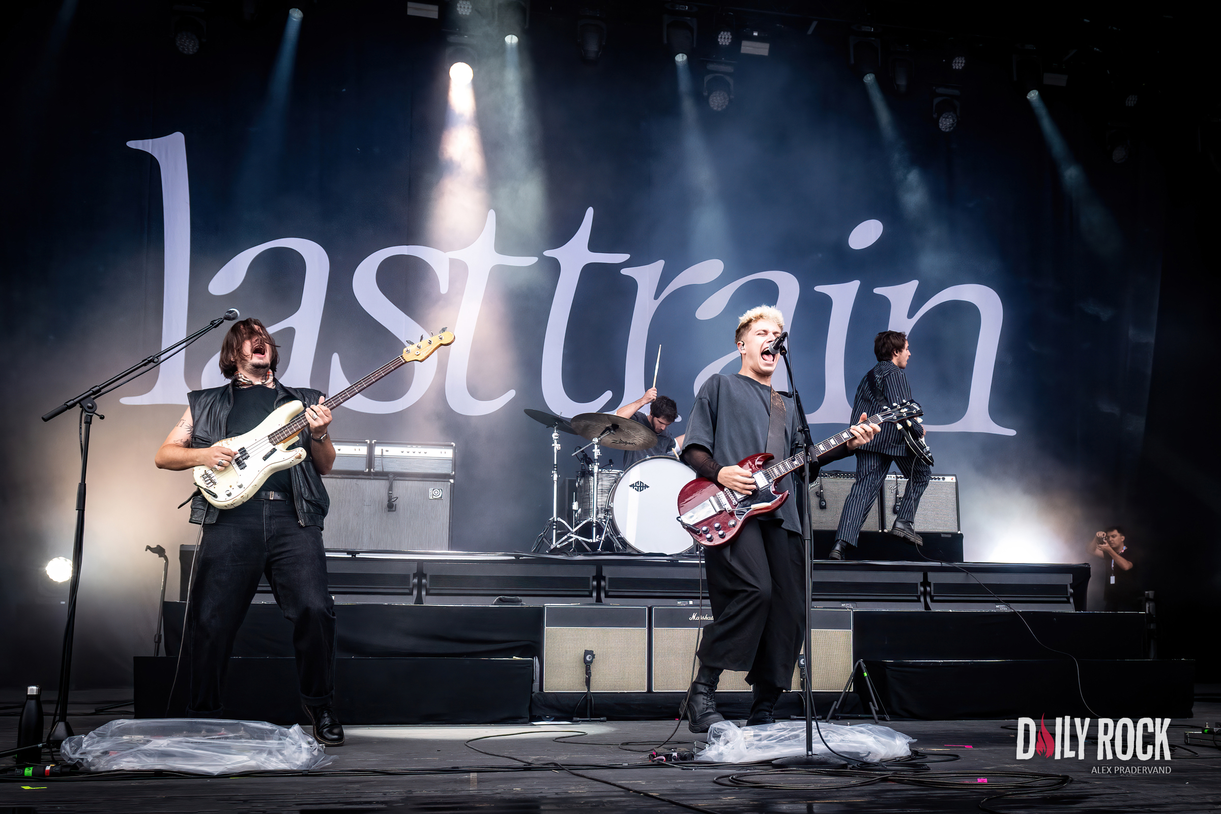 Fallait pas arriver trop tard samedi car y’avait Last Train sur la scène Vega à 17h30 déjà. Accueillis par une pluie massive, les Français avaient également devant eux un public nombreux, entre les fans et les curieux de découvrir cette nouvelle sensation rock hexagonale. Je les ai loupé aux Docks quelques mois plutôt et depuis le temps que j’entendais parler d’eux, j’étais décidé à ne pas en perdre une miette.