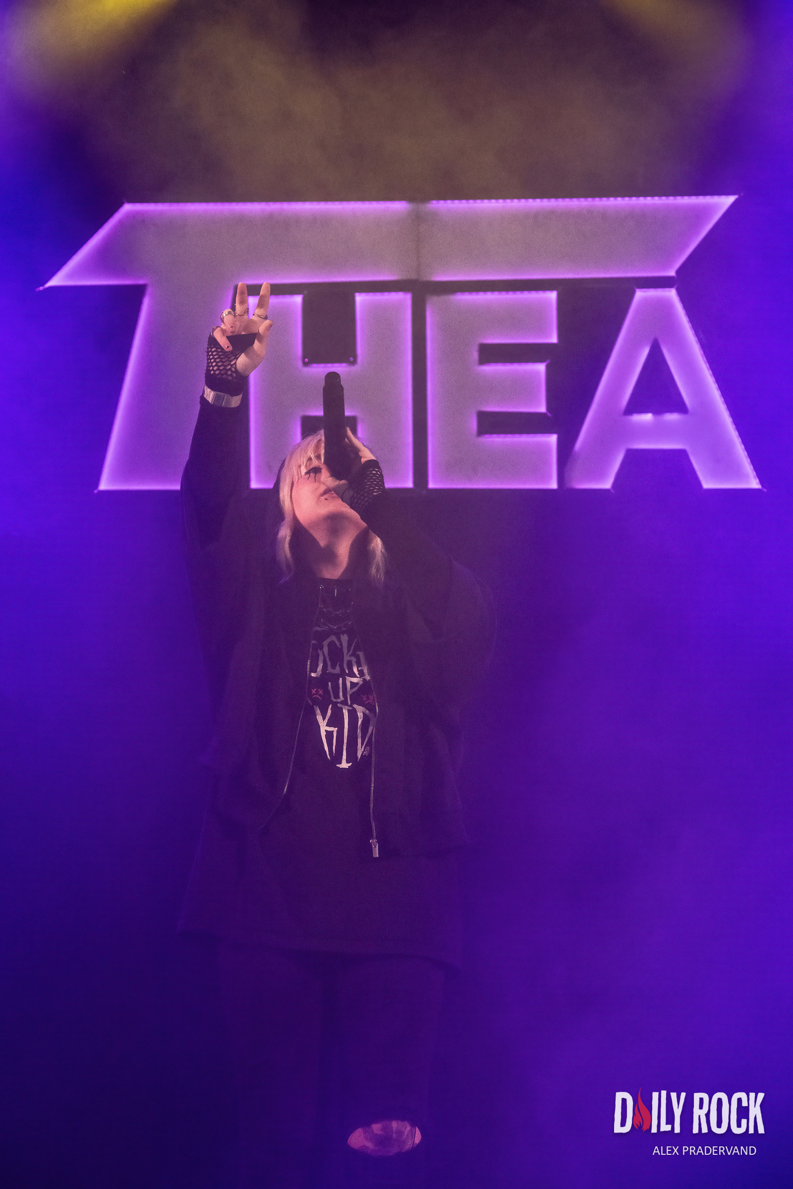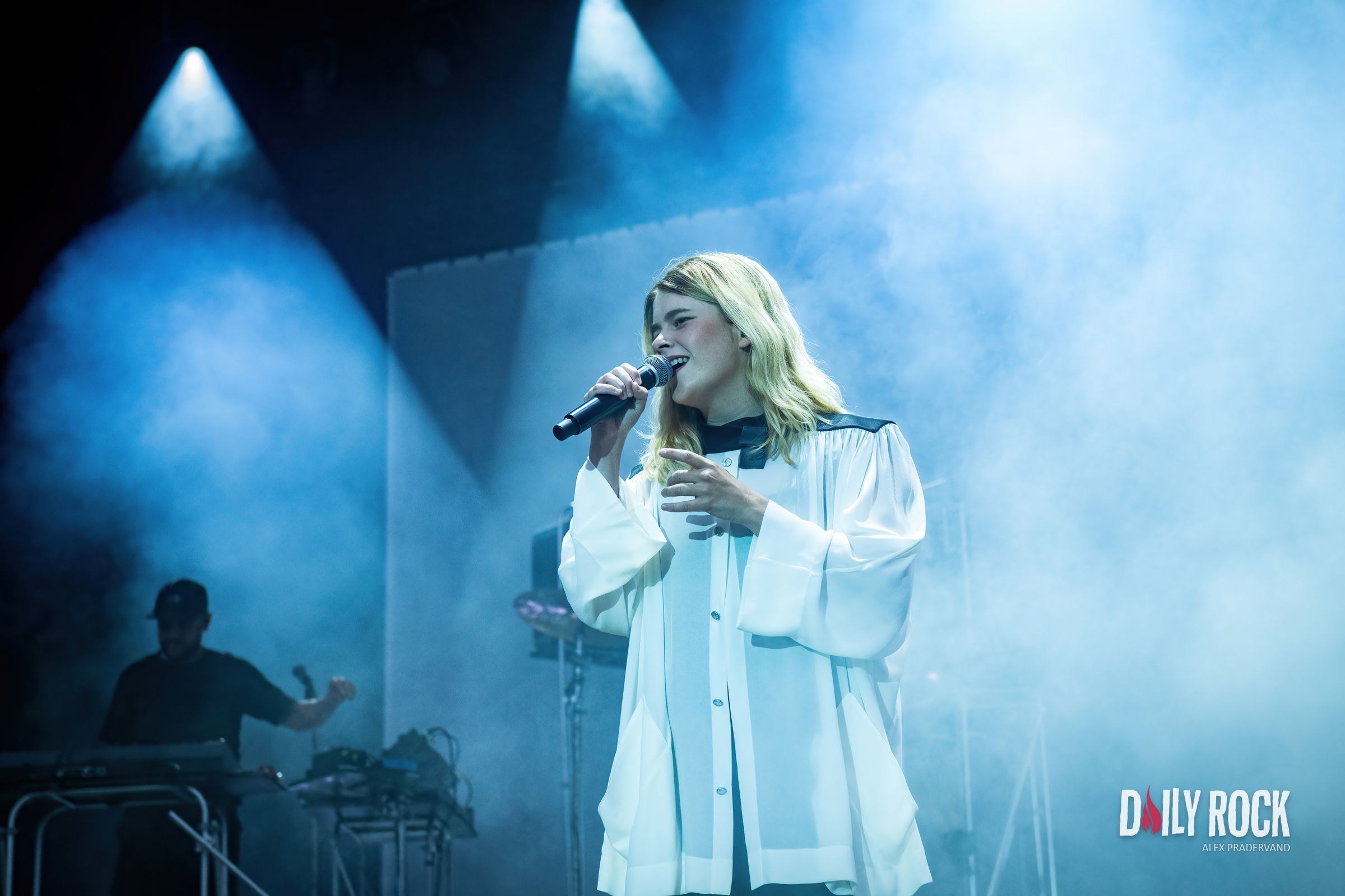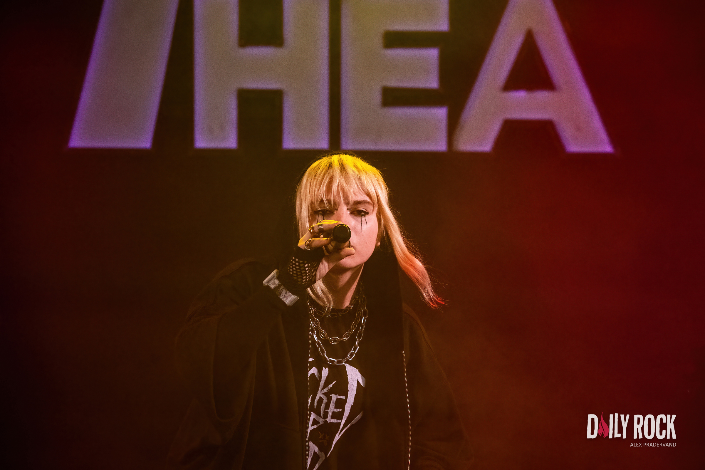 Dans le Club Tent voisin, il y a Théa qui a droit à une heure de set. Autant dire qu’elle est attendue, doit plus y’avoir une seule place de libre et ce n’est pas lié à la pluie qui n’a pas repris.