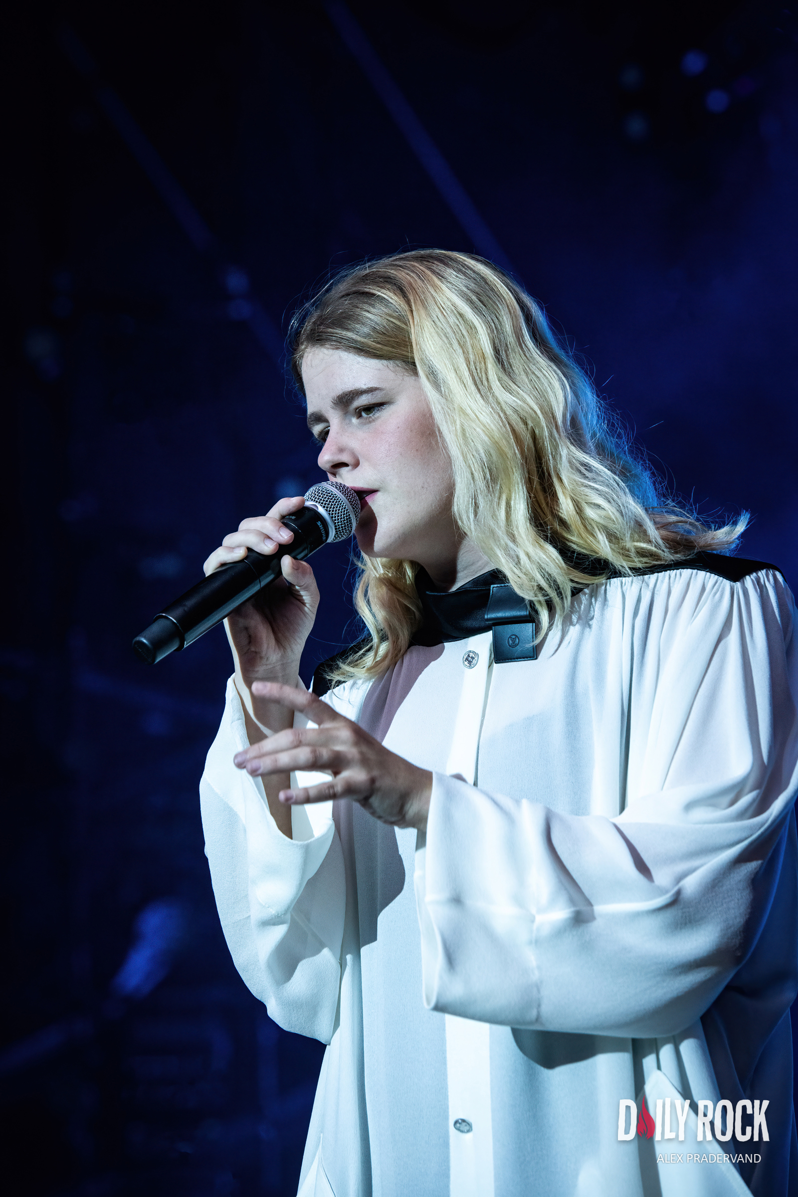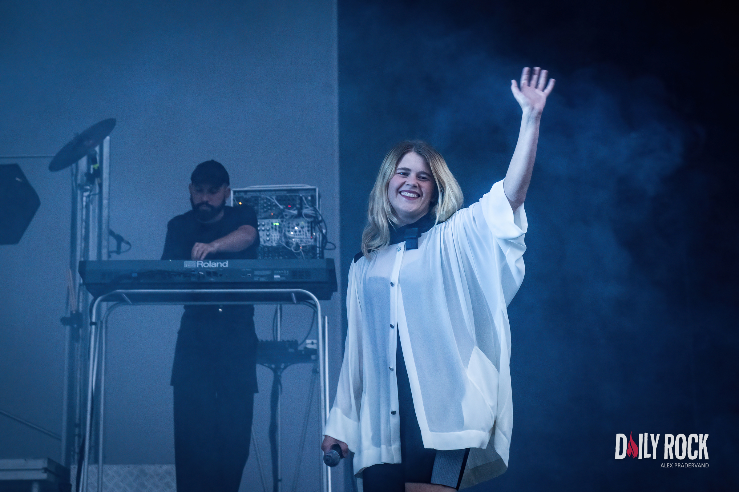 Jolie foule donc pour accueilir la Française et sa pop teintée de punk. Le programme parle d’hyperpop, j’avoue je ne sais pas ce que c’est, mais ce qui est sûr c’est que cela bouge. Intenable, cela court et saute dans tous les sens, le public répond massivement. Et faut souligner qu’elle joue avec un vrai groupe : batterie et guitariste l’accompagnent. Je l’avais découverte avec ‘Anxiolytiques’ l’an passé et je vois que c’est bien plus musclé en live, elle a dû passer aux Amphétamines dans l’intervalle! Moment très sympa et je note mentalement qu’elle sera aux Docks l’an prochain, une date à réserver dans le calendrier.