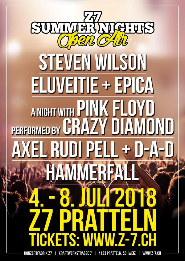 Depuis 2014, le Z7 organise ses Summer Nights et a accueilli des grands noms du rock et du metal tel Billy Idol, Sabaton, on encore Within Temptation. La programmation de cette année n’est pas en reste ; Steven Wilson, Eluveitie, Epica, Hammerfall, Shakra, seront tous de la partie !