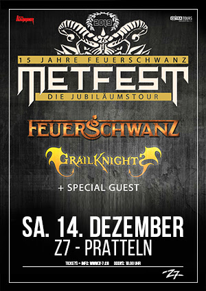 Pour célébrer les 15 ans de l’histoire du groupe, un festival entier est nommé en son honneur. Le Metfest vous invite vous et vous amis à participer à cet épique voyage. Aiguisez les épées et levez le coude ! Pour encore 15 ans de Feuerschwanz !