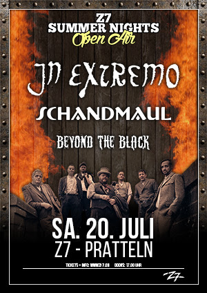 3 des plus importantes figures du rock medieval allemand embelliront les Z7 Summer Nights 2019. Quand les guitares électriques, basses et batteries rencontrent les vielles à roue, cornemuse et autres cythares, le Z7 se transforme en foire médiévale teintée de metal avec In Extremo. Ils seront accompagnés par les ménestrels suisses de Schandmaul et leur nouvel album ‘Artus‘.