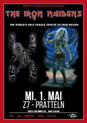 Les Iron Maidens sont de retour à Pratteln. L’unique tribute band entièrement féminin d’Iron Miaden rend hommage à toutes les périodes d’un des groupes les plus acclamés de la New Wave Of British Heavy Metal et présente des classiques tel que « Wrathchild », « Aces High », « 2 Minutes To Midnight », « Hallowed Be Thy Name « , » Run To The Hills « ou encore » The Number Of The Beast « . Les Maidens ont, depuis 15 ans, rempli les salles du monde entier : de leur Californie natale à l’Iraq, en passant par le Japon, le Guatemala ou encore la Turique.