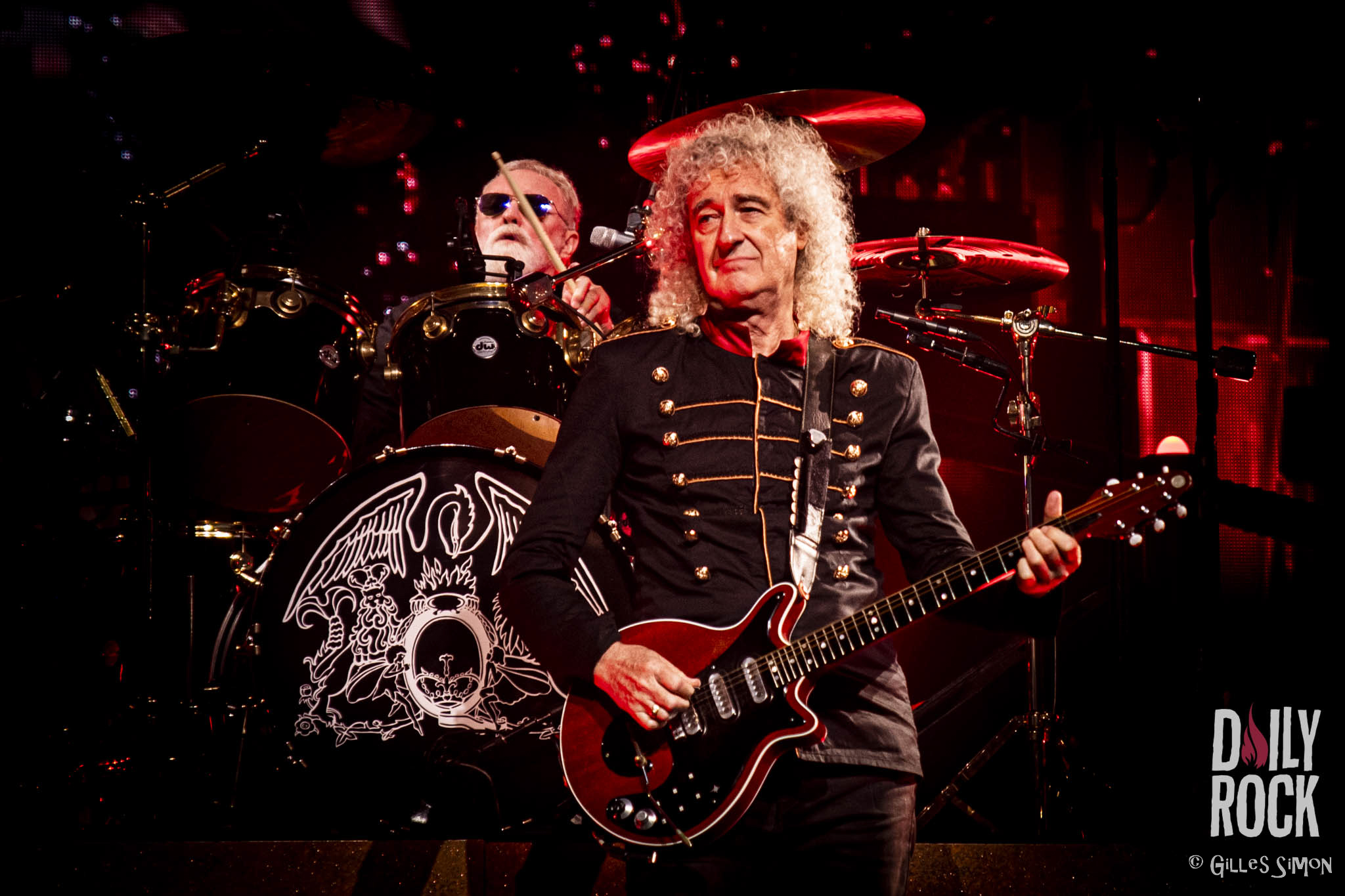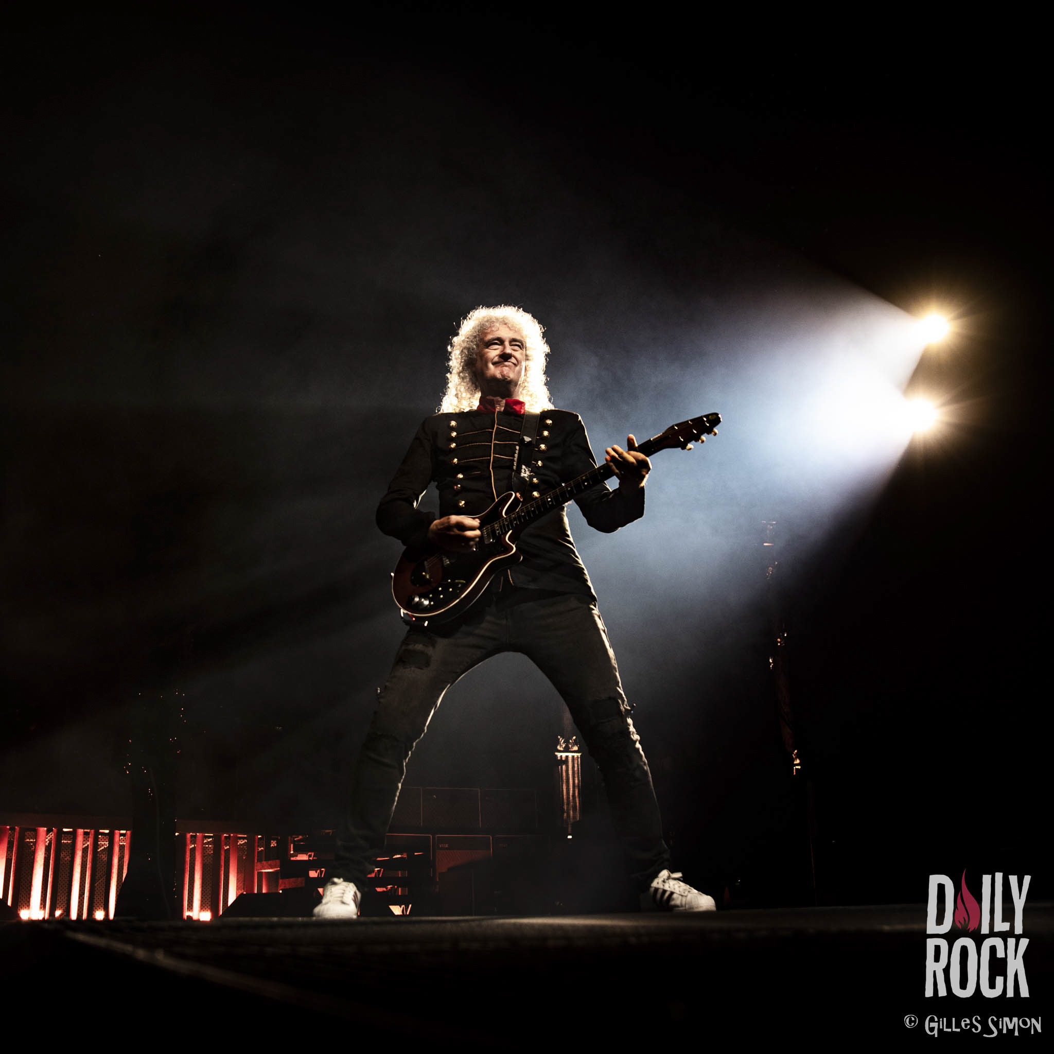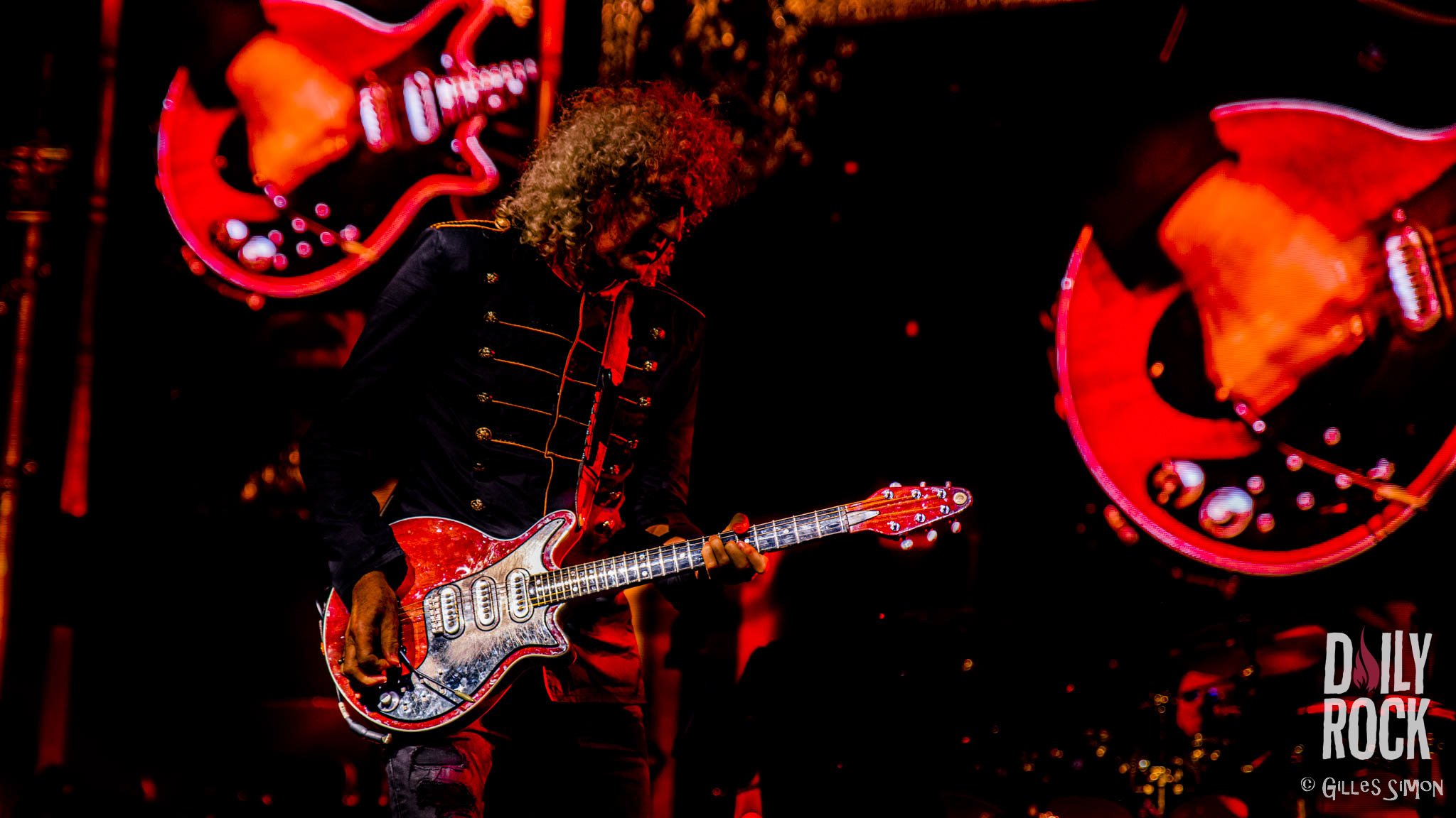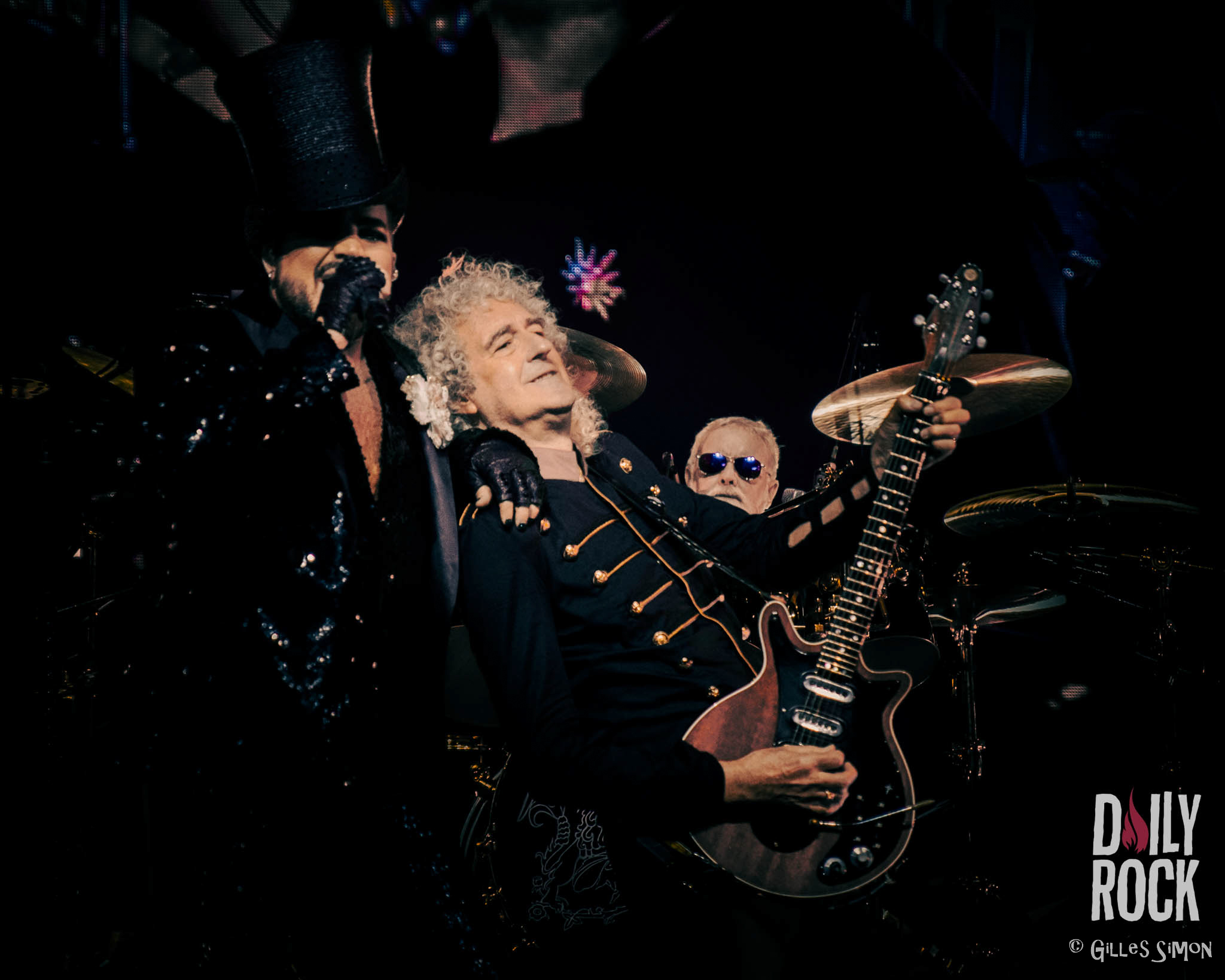 On a beau le savoir, c’est quand même impressionnant de constater à quel point Queen a aligné les hits dans sa carrière. De « Now I’m Here » à « We Are The Champions », en passant par « Don’t Stop Me Now », « Under Pressure », « I Want To Break Free », « Radio Ga-Ga », « Bohemian Rhapsody » ou encore « We will rock you », c’est proprement hallucinant. Alors bien sûr, Freddie Mercury n’est plus là pour les interpréter et John Deacon a choisi de se retirer, mais Brian May et Roger Taylor sont encore prêts à prendre la route pour se rappeler à notre bon souvenir. Et avec Adam Lambert, ils ont trouvé un bon partenaire. Bien sûr, il est différent de Freddie Mercury, mais heureusement il ne cherche pas à l’imiter. Et il fait un job remarquable. Certes, il a un côté « too much » (trop maquillé, trop pailleté), mais ça, justement, on peut imaginer que Freddie aurait apprécié. Tout comme il doit sûrement apprécier depuis là-haut que ses ex-comparses continuent de l’intégrer à leurs concerts – par vidéo interposée – plus de 30 ans après sa disparition. Un très beau concert et une certaine émotion tout de même de pouvoir encore voir sur scène les légendes que sont Roger Taylor et Brian May (accompagné comme il se doit de sa « Red Special », la guitare unique qu’il a construite avec son père en 1964 et qu’il n’a jamais quittée depuis – une légende elle aussi).