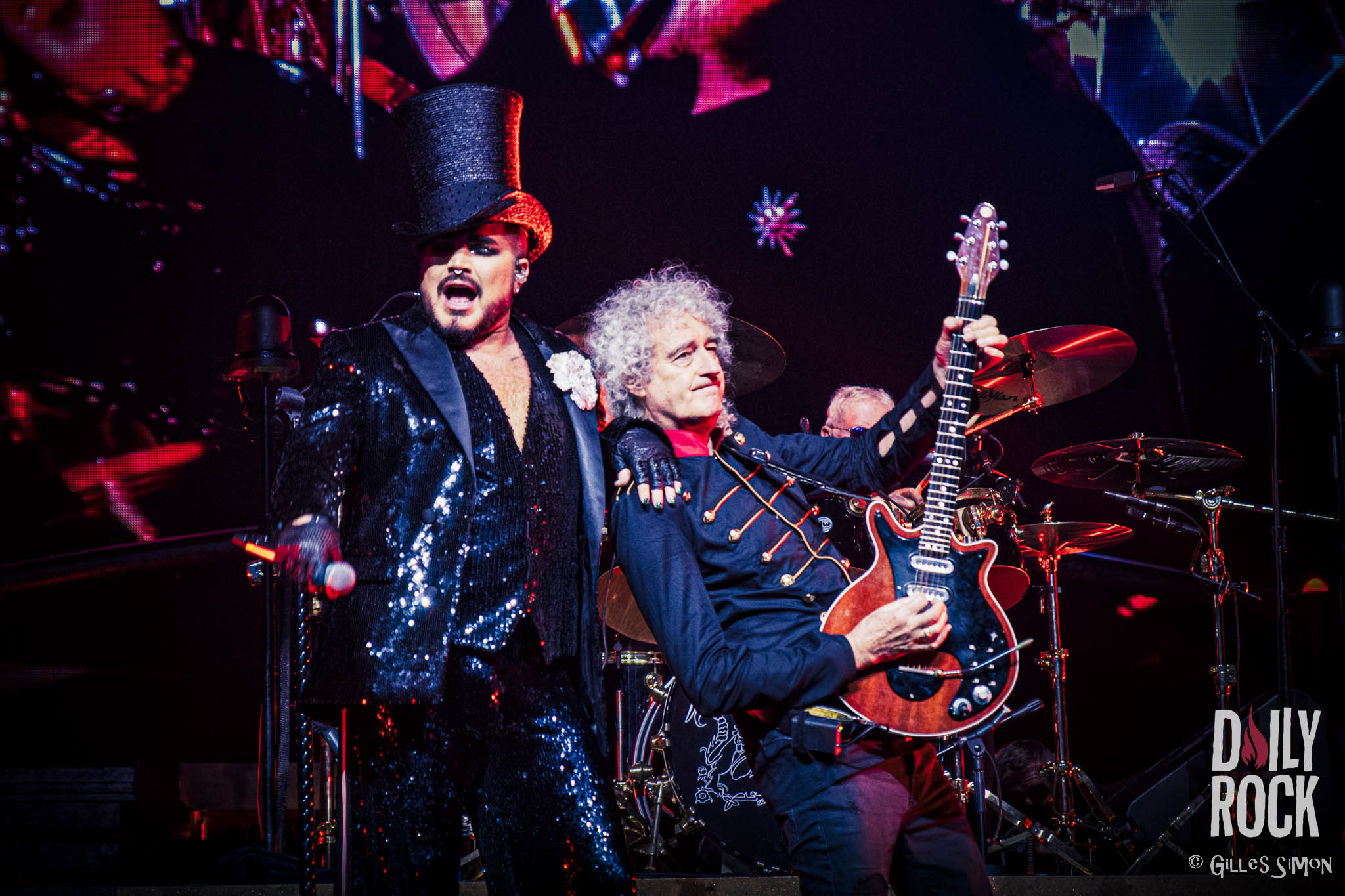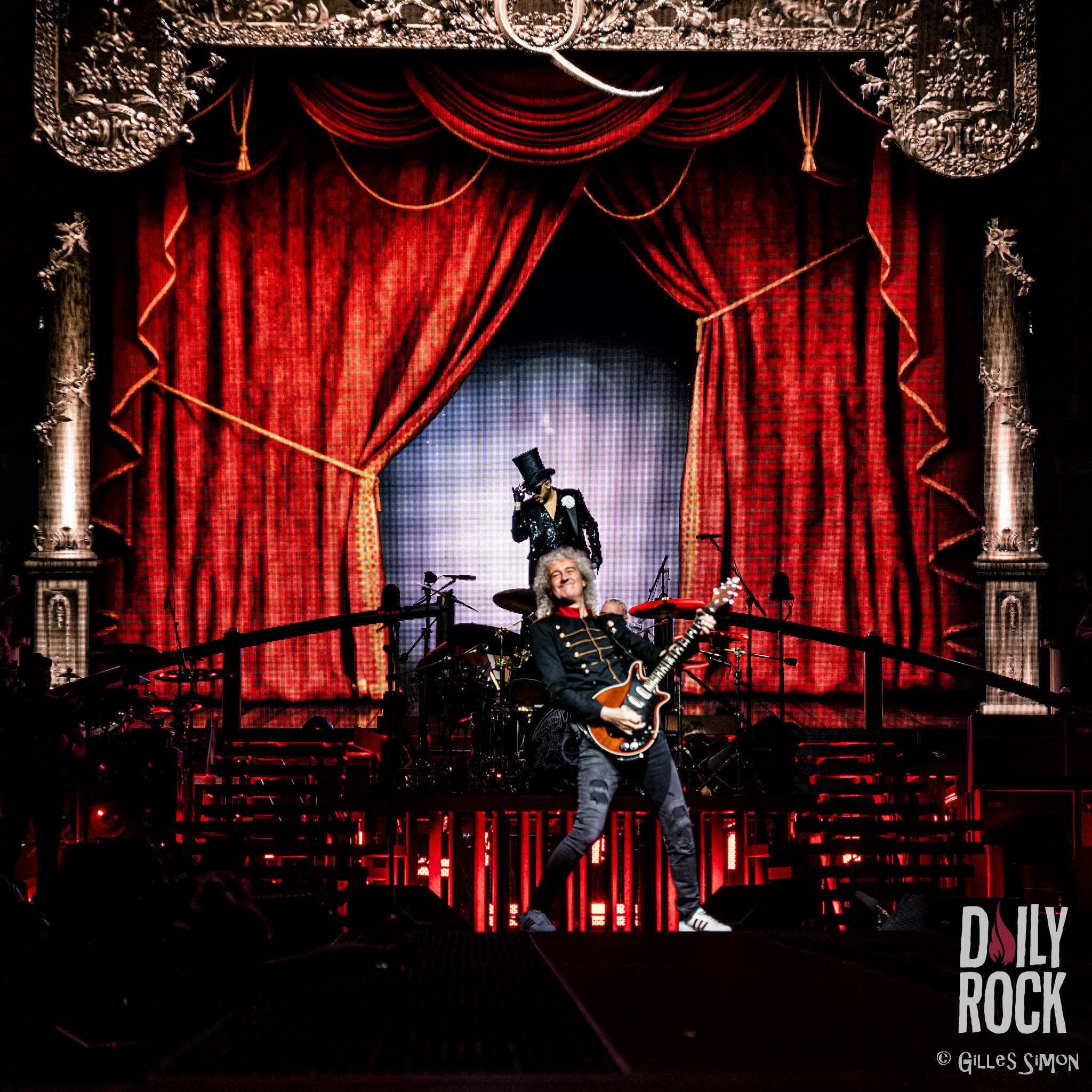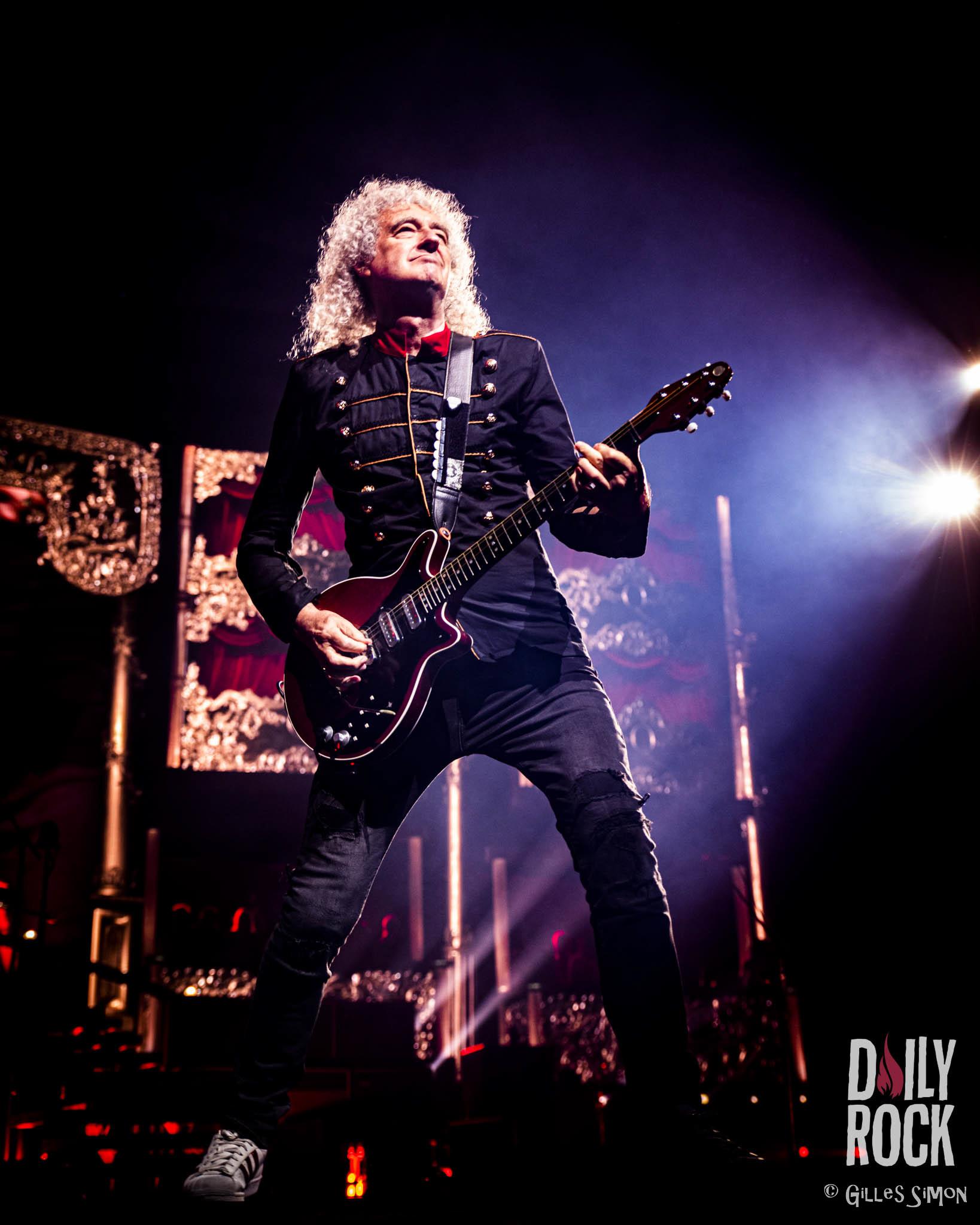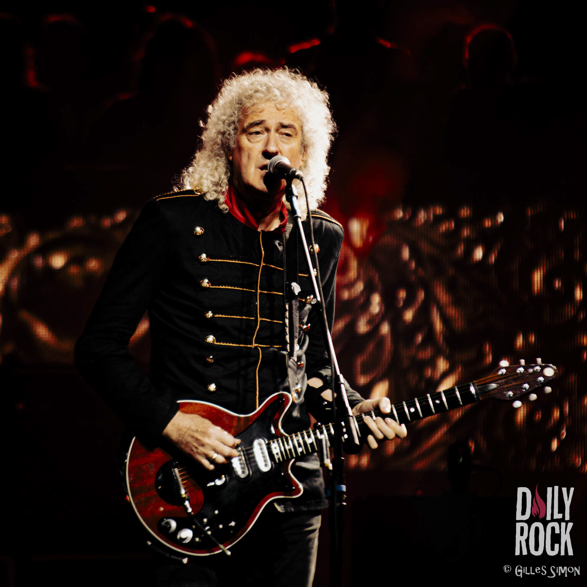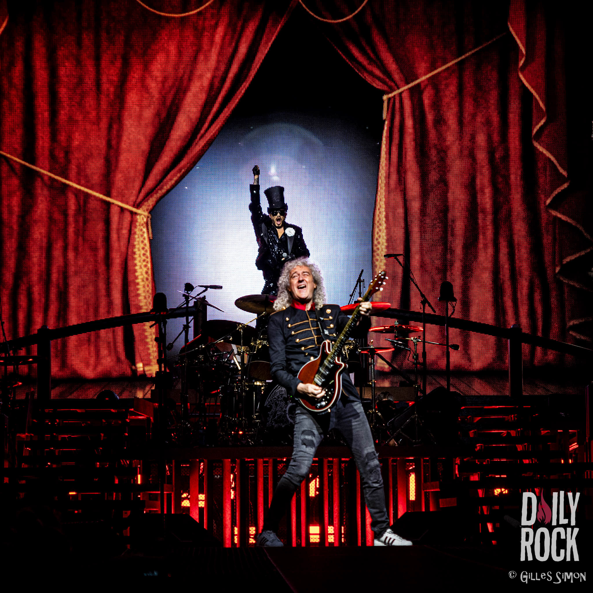 On a beau le savoir, c’est quand même impressionnant de constater à quel point Queen a aligné les hits dans sa carrière. De « Now I’m Here » à « We Are The Champions », en passant par « Don’t Stop Me Now », « Under Pressure », « I Want To Break Free », « Radio Ga-Ga », « Bohemian Rhapsody » ou encore « We will rock you », c’est proprement hallucinant. Alors bien sûr, Freddie Mercury n’est plus là pour les interpréter et John Deacon a choisi de se retirer, mais Brian May et Roger Taylor sont encore prêts à prendre la route pour se rappeler à notre bon souvenir. Et avec Adam Lambert, ils ont trouvé un bon partenaire. Bien sûr, il est différent de Freddie Mercury, mais heureusement il ne cherche pas à l’imiter. Et il fait un job remarquable. Certes, il a un côté « too much » (trop maquillé, trop pailleté), mais ça, justement, on peut imaginer que Freddie aurait apprécié. Tout comme il doit sûrement apprécier depuis là-haut que ses ex-comparses continuent de l’intégrer à leurs concerts – par vidéo interposée – plus de 30 ans après sa disparition. Un très beau concert et une certaine émotion tout de même de pouvoir encore voir sur scène les légendes que sont Roger Taylor et Brian May (accompagné comme il se doit de sa « Red Special », la guitare unique qu’il a construite avec son père en 1964 et qu’il n’a jamais quittée depuis – une légende elle aussi).