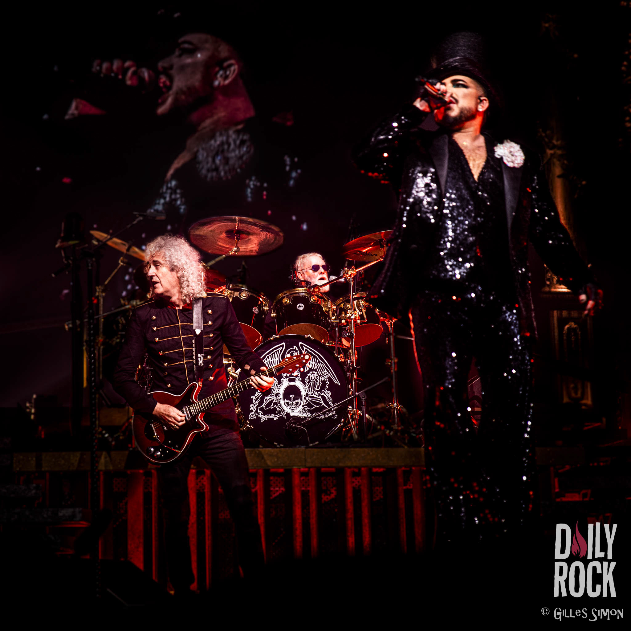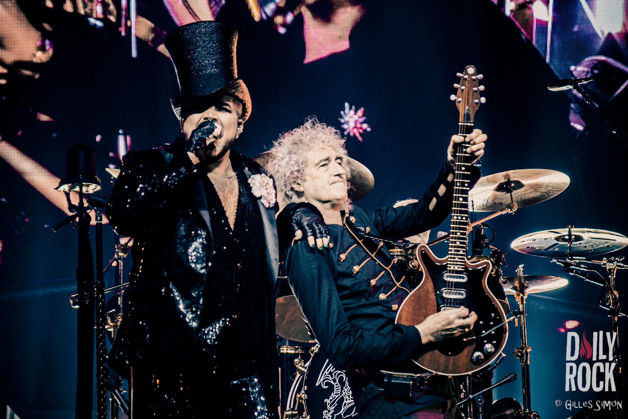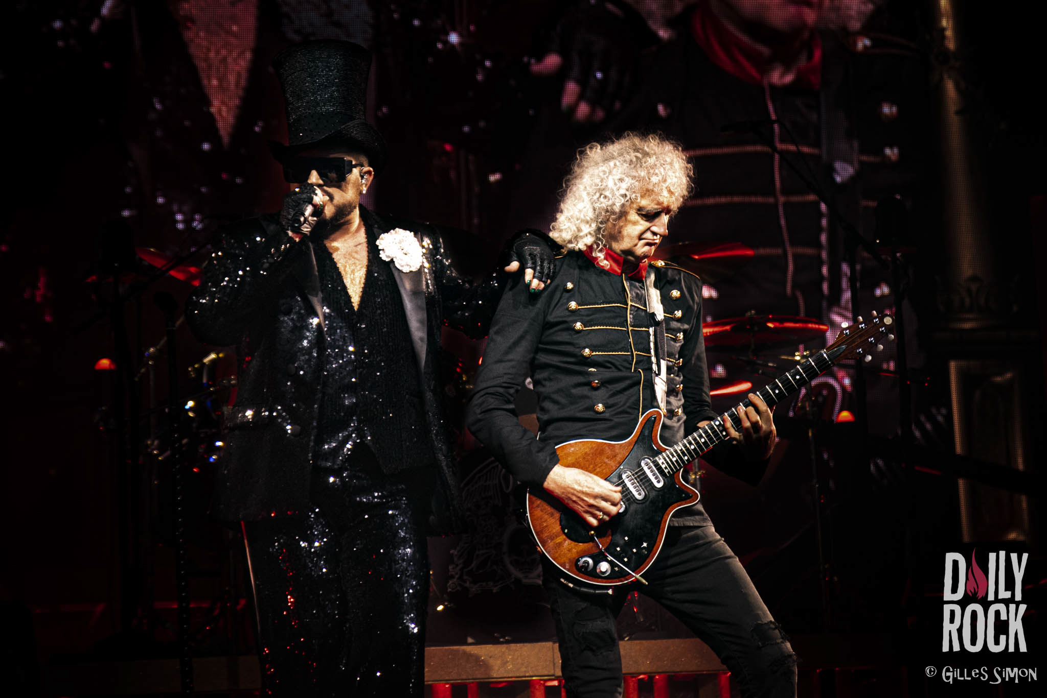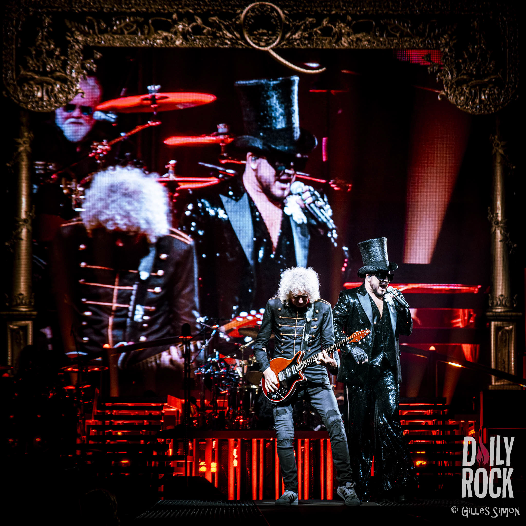 On a beau le savoir, c’est quand même impressionnant de constater à quel point Queen a aligné les hits dans sa carrière. De « Now I’m Here » à « We Are The Champions », en passant par « Don’t Stop Me Now », « Under Pressure », « I Want To Break Free », « Radio Ga-Ga », « Bohemian Rhapsody » ou encore « We will rock you », c’est proprement hallucinant. Alors bien sûr, Freddie Mercury n’est plus là pour les interpréter et John Deacon a choisi de se retirer, mais Brian May et Roger Taylor sont encore prêts à prendre la route pour se rappeler à notre bon souvenir. Et avec Adam Lambert, ils ont trouvé un bon partenaire. Bien sûr, il est différent de Freddie Mercury, mais heureusement il ne cherche pas à l’imiter. Et il fait un job remarquable. Certes, il a un côté « too much » (trop maquillé, trop pailleté), mais ça, justement, on peut imaginer que Freddie aurait apprécié. Tout comme il doit sûrement apprécier depuis là-haut que ses ex-comparses continuent de l’intégrer à leurs concerts – par vidéo interposée – plus de 30 ans après sa disparition. Un très beau concert et une certaine émotion tout de même de pouvoir encore voir sur scène les légendes que sont Roger Taylor et Brian May (accompagné comme il se doit de sa « Red Special », la guitare unique qu’il a construite avec son père en 1964 et qu’il n’a jamais quittée depuis – une légende elle aussi).
