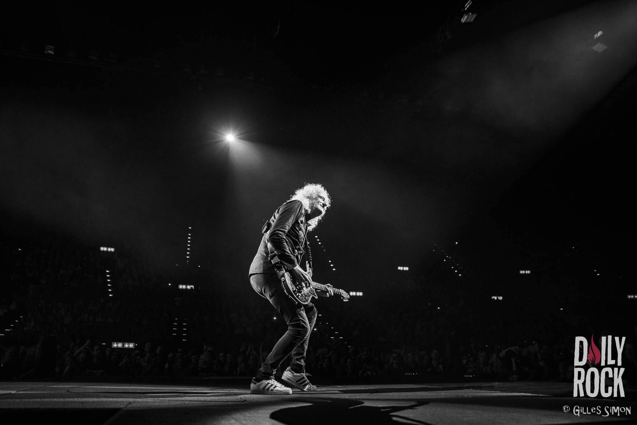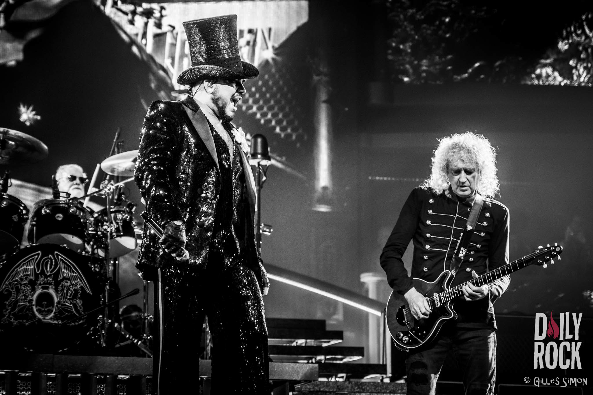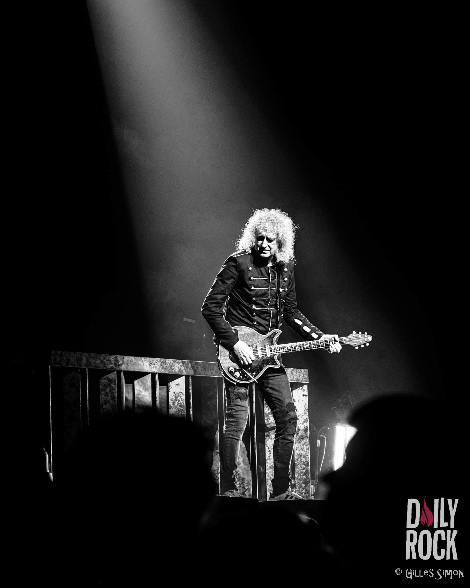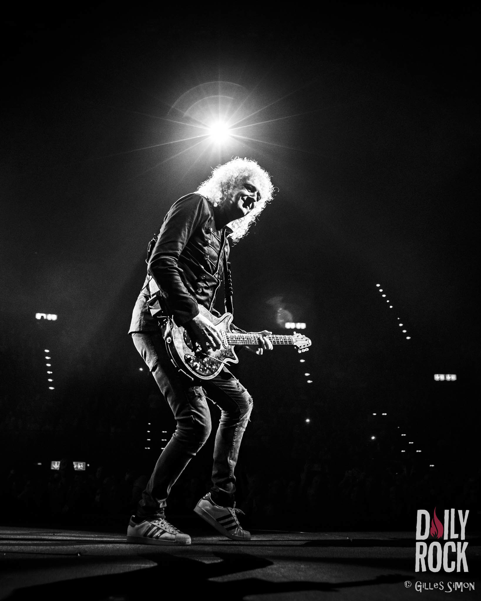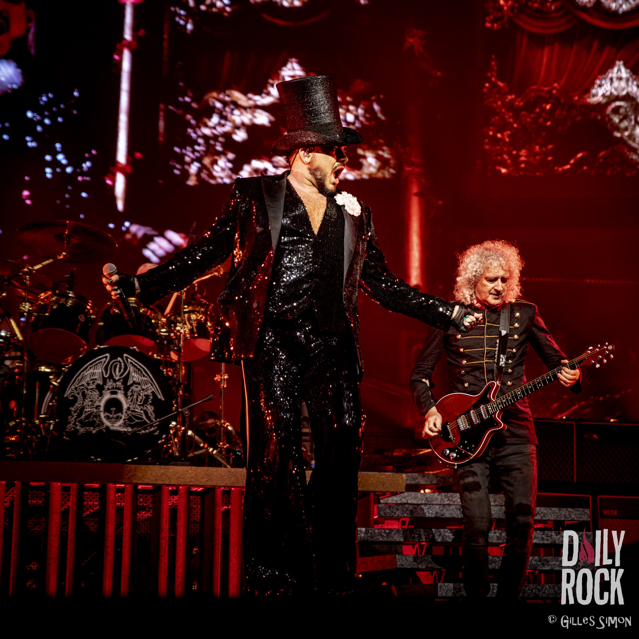 On a beau le savoir, c’est quand même impressionnant de constater à quel point Queen a aligné les hits dans sa carrière. De « Now I’m Here » à « We Are The Champions », en passant par « Don’t Stop Me Now », « Under Pressure », « I Want To Break Free », « Radio Ga-Ga », « Bohemian Rhapsody » ou encore « We will rock you », c’est proprement hallucinant. Alors bien sûr, Freddie Mercury n’est plus là pour les interpréter et John Deacon a choisi de se retirer, mais Brian May et Roger Taylor sont encore prêts à prendre la route pour se rappeler à notre bon souvenir. Et avec Adam Lambert, ils ont trouvé un bon partenaire. Bien sûr, il est différent de Freddie Mercury, mais heureusement il ne cherche pas à l’imiter. Et il fait un job remarquable. Certes, il a un côté « too much » (trop maquillé, trop pailleté), mais ça, justement, on peut imaginer que Freddie aurait apprécié. Tout comme il doit sûrement apprécier depuis là-haut que ses ex-comparses continuent de l’intégrer à leurs concerts – par vidéo interposée – plus de 30 ans après sa disparition. Un très beau concert et une certaine émotion tout de même de pouvoir encore voir sur scène les légendes que sont Roger Taylor et Brian May (accompagné comme il se doit de sa « Red Special », la guitare unique qu’il a construite avec son père en 1964 et qu’il n’a jamais quittée depuis – une légende elle aussi).
