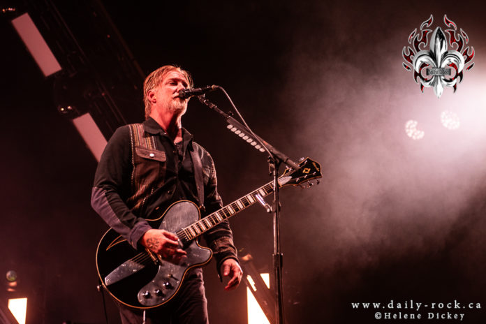 En guise de première partie, la formation britannique de The Struts nous en aura mis plein la vue. Avec une réputation scénique à en faire pâlir plus d’un, le look glam léché de Luke Spiller (ndlr: le chanteur) et sa voix puissante et charismatique (certains le comparent à Freddie Mercury, rien que ça!), il va sans dire que le groupe a fait un effet bœuf. Probablement pas habitué à se faire bousculer de la sorte, le public s’est pourtant vite laissé embarquer par les riffs ravageurs et l’énergie débordante de Spiller. Pas de quoi faire de l’ombre aux Queens Of The Stone Age, mais on notera le choix judicieux de la première partie, histoire d’avoir le public qui nous mange dans la main par la suite. Un groupe à voir en live!