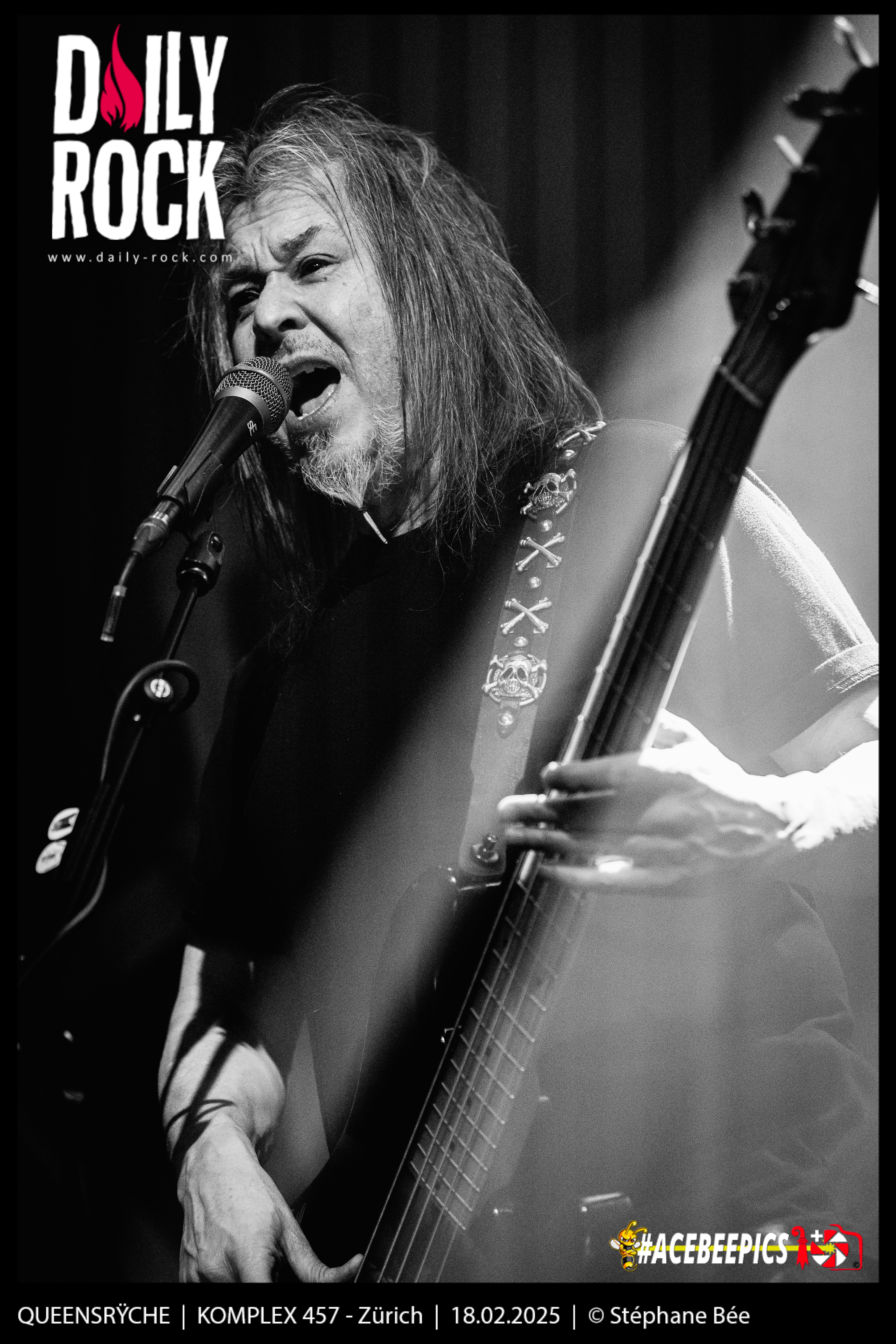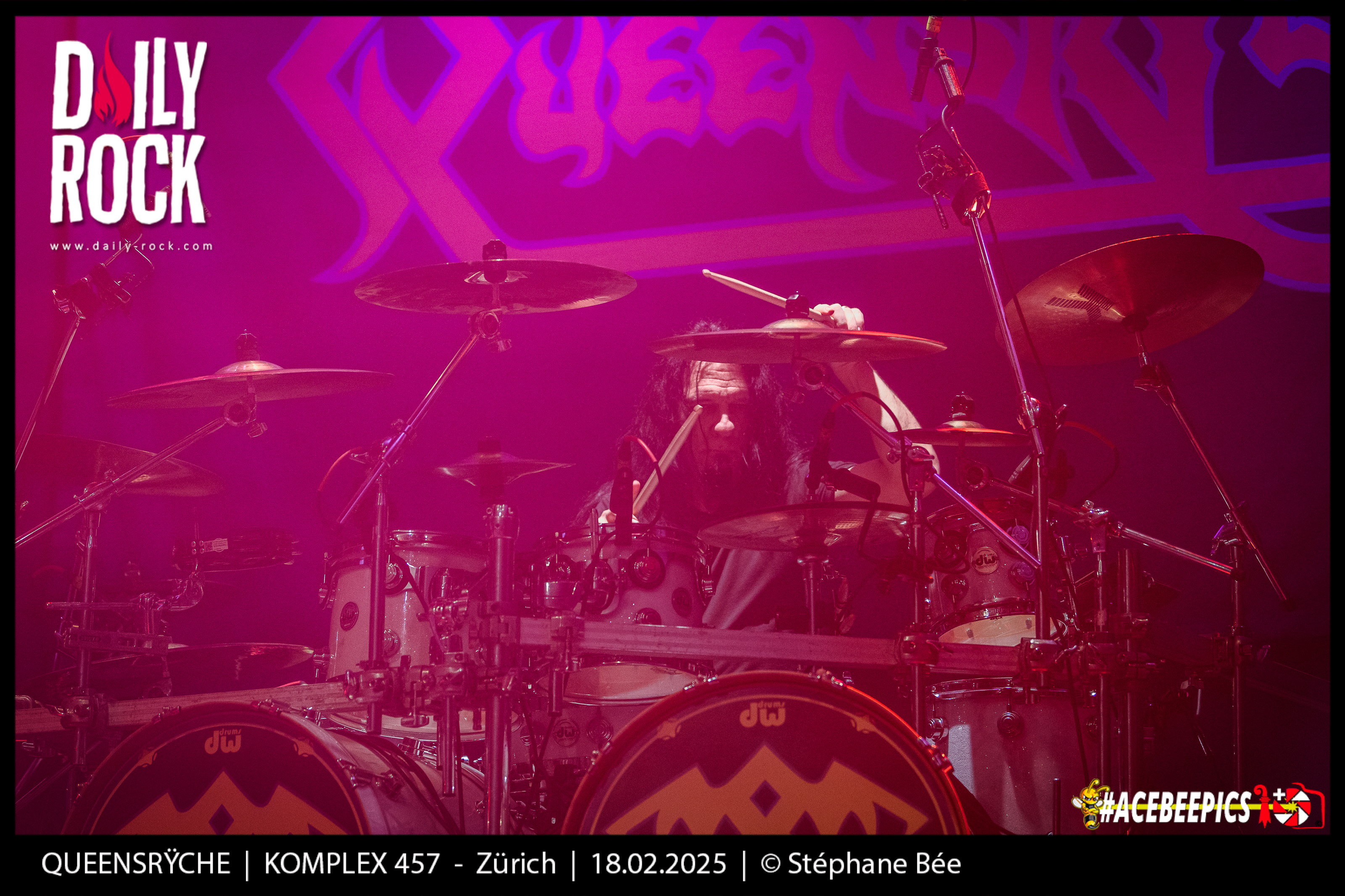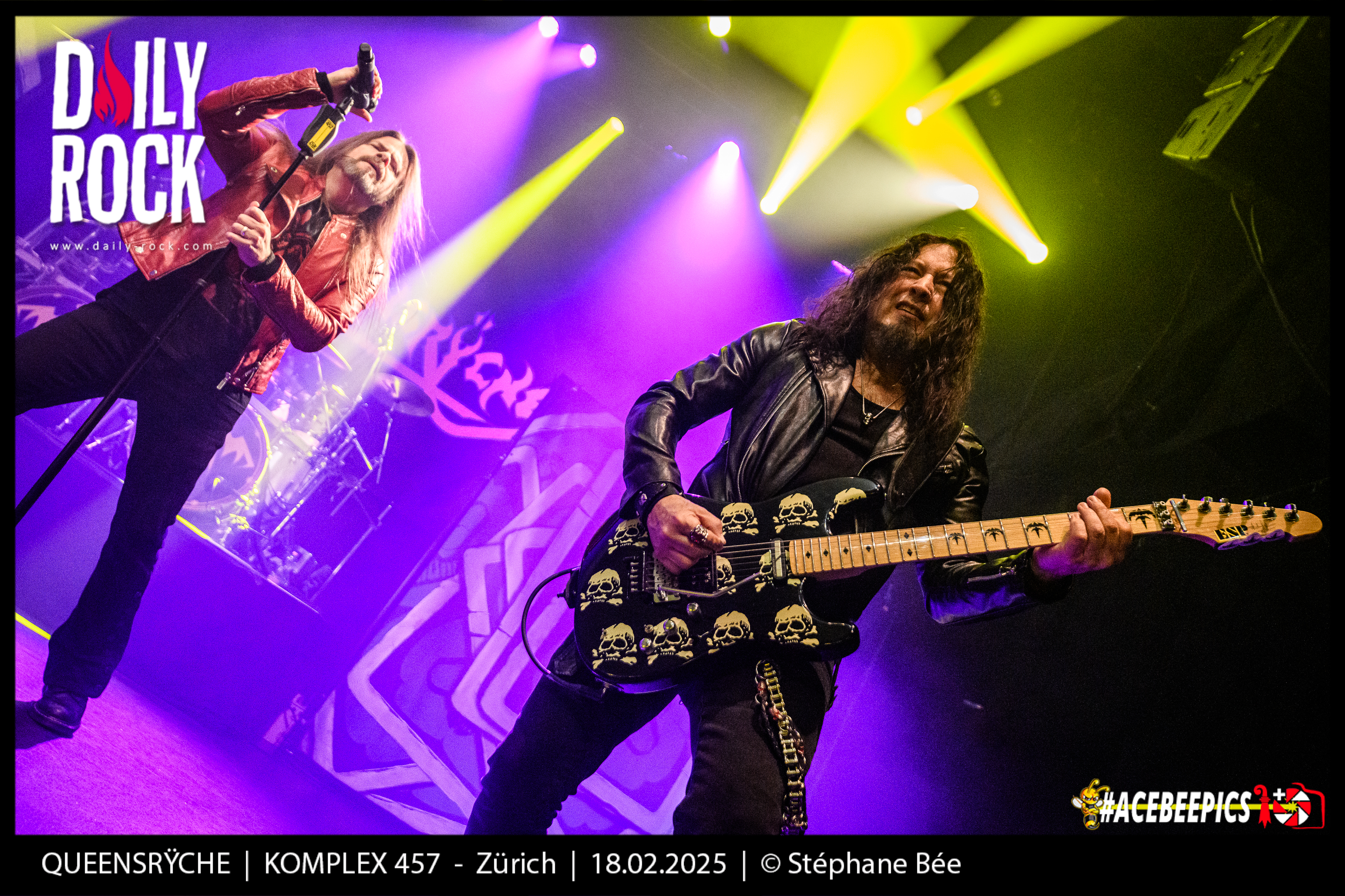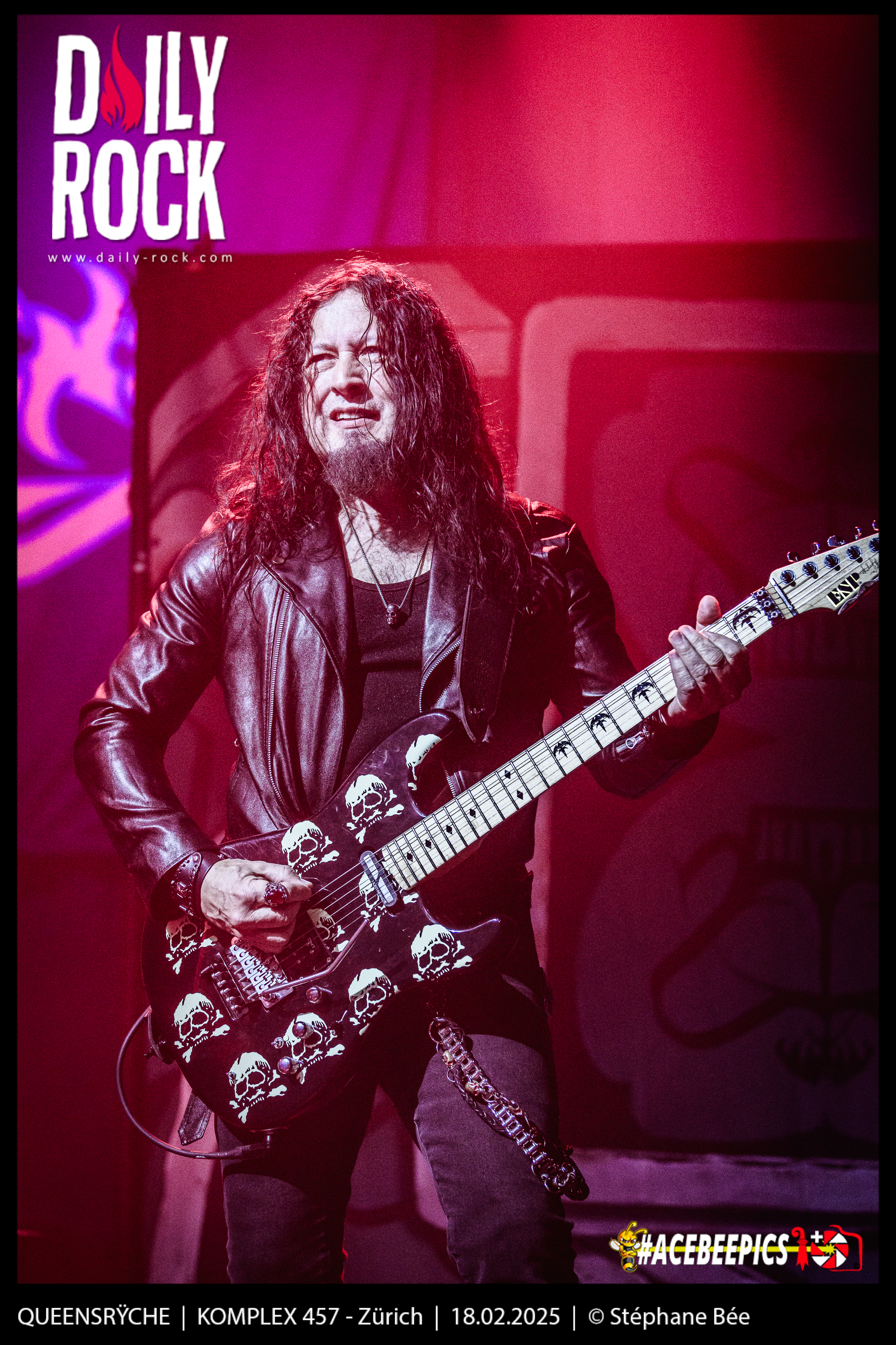 Scène relativement sobre pour Queensrÿche au Komplex 457 pas complet mais bien garni. Les premiers rangs occupés par les fans de la première heure sont bien serrés. Ce sont des monuments de l’histoire du hard rock progressif qui vont être joués ce soir pour le public passionné et impatient. Du groupe originel ne restent que Michael Wilton à la guitare et Eddie Jackson à la basse, mais les autres musiciens et Todd La Torre au chant ne sont pas en reste et font superbement bien leur job.