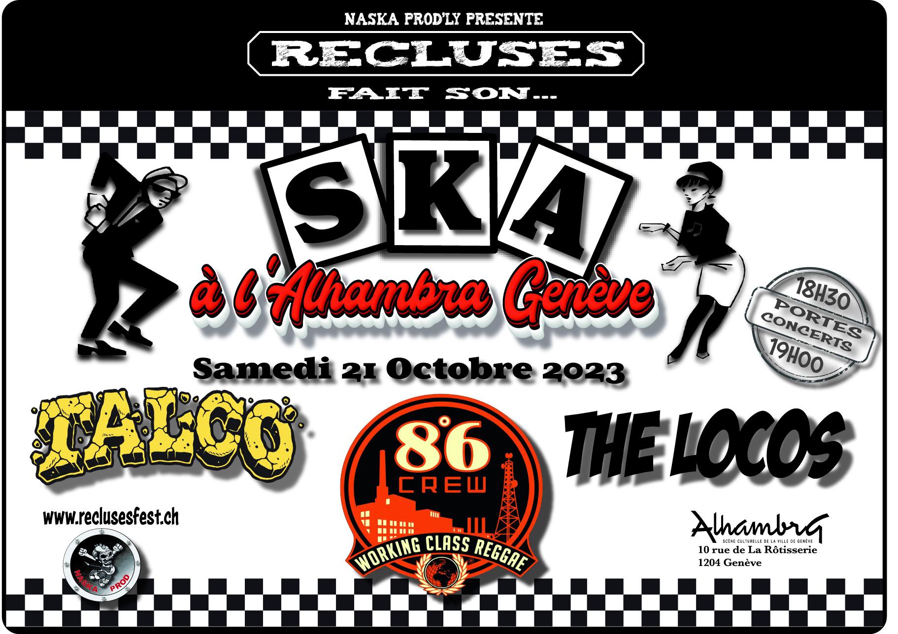 Les légendaire 8.6 Crew, originaire de Paris, vont venir faire danser Genève sur leur tempo ska/reggae/skinhead. Leurs dernières dates en suisse romande remontent à septembre 2019 ! S’ajoute à cela les incontournable The Locos, qui nous viennent de Madrid groupe ska punk crée par Pipi, un des deux front man et chanteur du groupe SKA-P. The Locos formé en 2005 et assimilant le ska et les influences alliant punk ska 60’s garage avec une maturité solide. Leur live survolté ne vous laissera pas de marbre. L’affiche se complète avec TALCO, groupe italien originaire de Marghera. Prenant ses origines dans le ska classique, Talco trouve un son qui lui est propre, mélangeant des rythmes patchanka typiques de la Mano Negra avec le punk et le ska, parfois inspiré par la musique des Balkans mais toujours fidèle à son héritage des compositeurs italiens sur le sujet de l’intérêt des paroles.