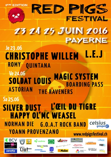 Heureusement pour nos cochons rouge, l’organisation méticuleuse prend toujours les devants. Ainsi, cette édition en verra de toute les couleurs : De Christophe Wilhelm ou Magic System pour les plus familiaux et festifs, on pourra également (re)découvrir sur scène Soldat Louis, G.O.A.T ou Silver Dust pour les plus rockeurs d’entre nous. Un exploit qui n’est pas un hasard. ‘Vu qu’il y a une sortie d’autoroute, les artistes viennent volontiers à Payerne (rires). Nous nous sommes organisés très tôt et sommes entrés en matière avec les bonnes personnes. Nous avons eu beaucoup de chance d’avoir L.E.J, car le trio est très prisé et fait un carton actuellement! Des groupes comme Soldat Louis (qui reviennent jouer à Payerne) nous font confiance. Nous avons aussi décidé de faire une deuxième soirée payante pour avoir les moyens d’offrir au public des artistes de renom et aussi qui rassemblent beaucoup de personnes de divers horizons musicaux.’ En grand pourfendeur de la qualité locale, la programmation fait également la part belle aux groupes helvétiques, afin de les faire partager le haut de l’affiche en compagnie de vieux briscards internationaux. ‘Plus de la moitié de notre programmation est suisse, nous y tenons fermement car il est fondamental de promouvoir les artistes de nos régions et pourquoi s’en priver quand ils sont d’une grande qualité?’ conclut Cécile Dauny. Une neuvième édition qui s’annonce d’ores et déjà comme le veulent les organisateurs : curieux, festif et passionné.