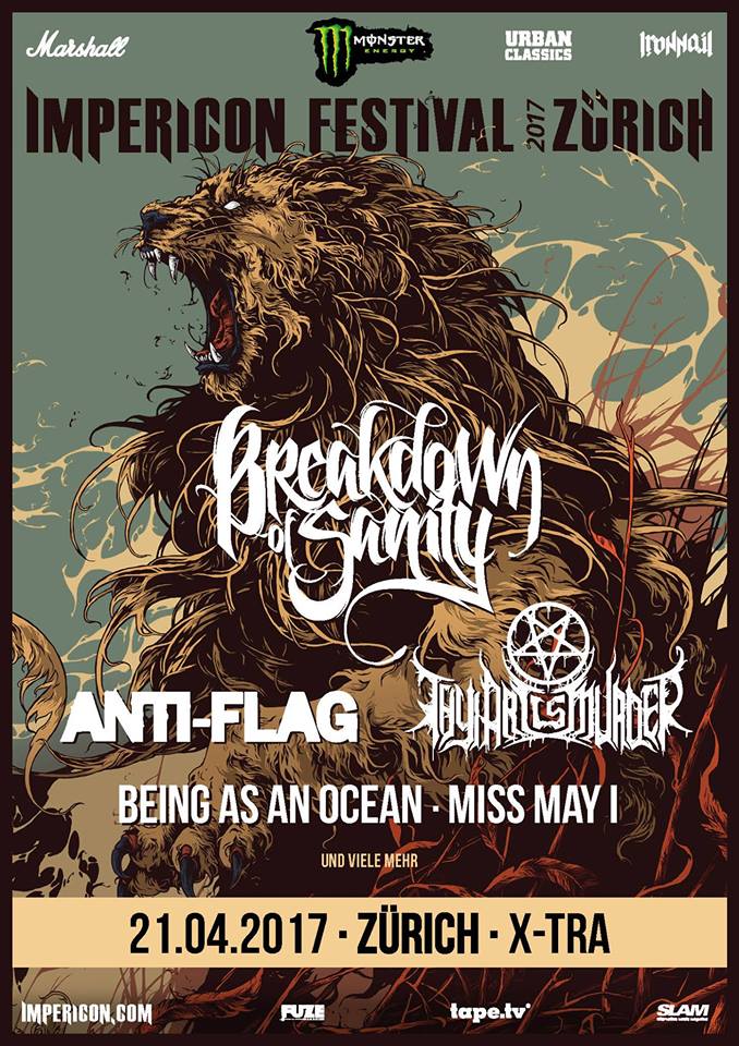 Au programme de cette édition 2017, on trouve Miss May I, Being As An Ocean, Thy Art Is Murder, Anti-Flag et en tête d’affiche, nos Bernois nationaux de Breakdown of Sanity.