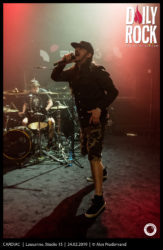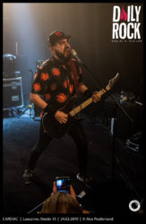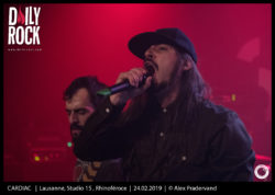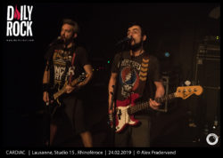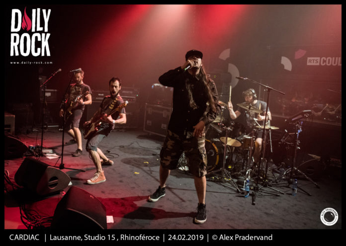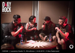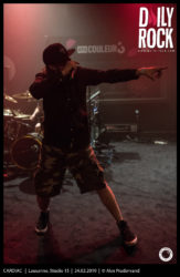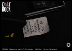 Le temps de quelques questions à Anna, Melvin et Ivo, le groupe Cardiac installe son matos et lance à son tour son set de 30 minutes. Une belle intensité malgré le peu d’espace pour bouger franchement et le fait que le groupe s’est présenté sans Bastien son batteur usuel et remplacé à l’arrache par Maik ex-Nostromo. Cardiac a joué bien plus fort que Cellar Darling (bon sans hurdy gurdy ni flûte traversière, cela aide) et le public a pu en profiter pour se lâcher. L’interview sympa a permis de rappeler que les groupes suisses n’existent vraiment dans leur pays qu’une fois qu’ils ont fait leur preuve à l’étranger, comme Cardiac après ses quelques dates en Europe avec Cypress Hill. Ricardo a aussi profité de l’occasion pour remercier l’émission de ce soir et les média qui soutiennent le rock indépendant, citant également Daily Rock au passage (merci à toi).
