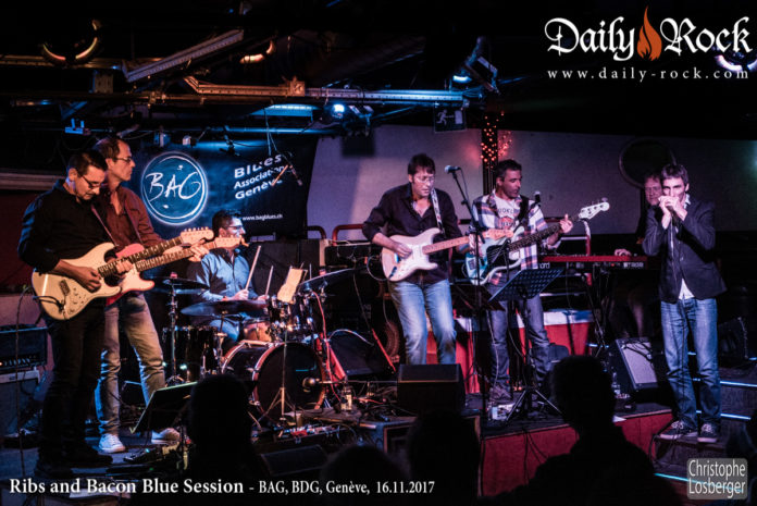Prenez Ribs and Bacon, un groupe qui tourne super bien, qui groove et vous donne déjà l’assurance de passer une excellente soirée et ajoutez-y trois des meilleurs musiciens de blues (mais pas que) du moment (Yves Staubitz, François Alba, Amaury Faivre) et vous obtenez Ribs and Bacon Blue Session : une bande de copain dans un supergroupe explosif qui revisite magistralement les meilleurs titres du blues et du vieux rock’n’roll ! Ils étaient au BDG, invités par le BAG (Blues Association de Genève) pour leur toute première sortie et gageons que nous les retrouverons à différents endroits dans le futur. A ne pas manquer !