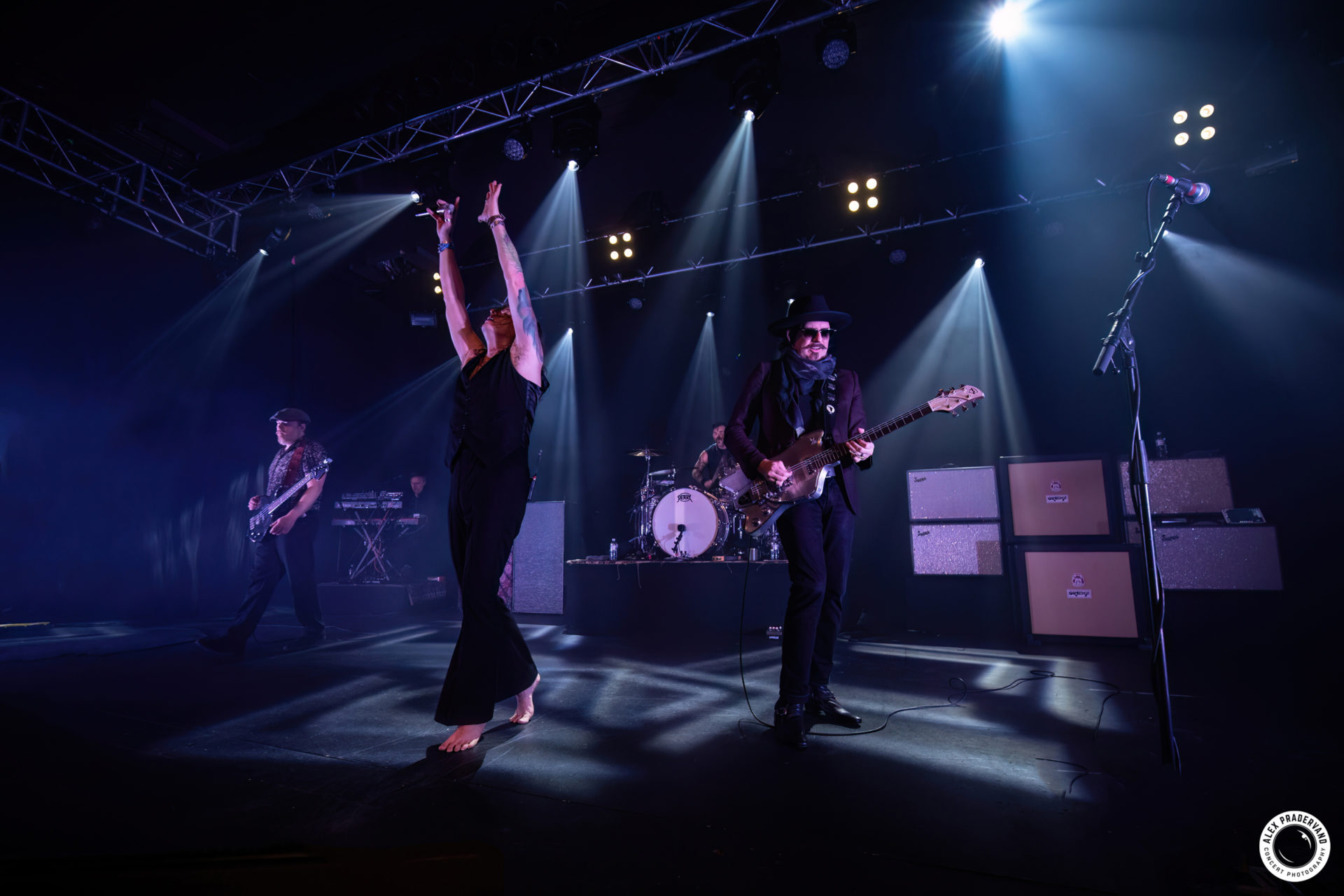 Début de concert avec le chaloupé « Mirrors », très seventies, avec ses nappes d’orgue, guitare électrique et semi-acoustique en alternance. Jay Buchanan, chanteur charismatique, pieds nus comme à l’accoutumée, évolue tel un félin, capte l’attention des fans et se donne à fond dès les premières notes. Scott Holiday, tout en élégance, arrive en costard – écharpe – stetson et lunettes de soleil nous délivre des riffs d’enfer sur ses guitares qui ont de la gueule. « Do Your Worst » qui suit ne lâche pas la pression avant que le groupe n’interprète un puissant « Electric » , titre qui n’a jamais aussi bien porté son nom. L’espace d’un instant, on a craint pour la voix de Jay qui donnait quelques signes de faiblesse mais Dieu merci, il n’en était rien. Il faut dire qu’il ne se ménage pas sur scène et vit sa musique corps et âme.