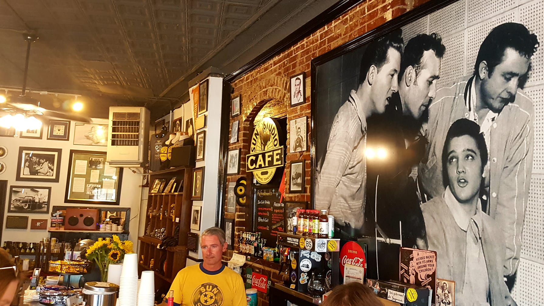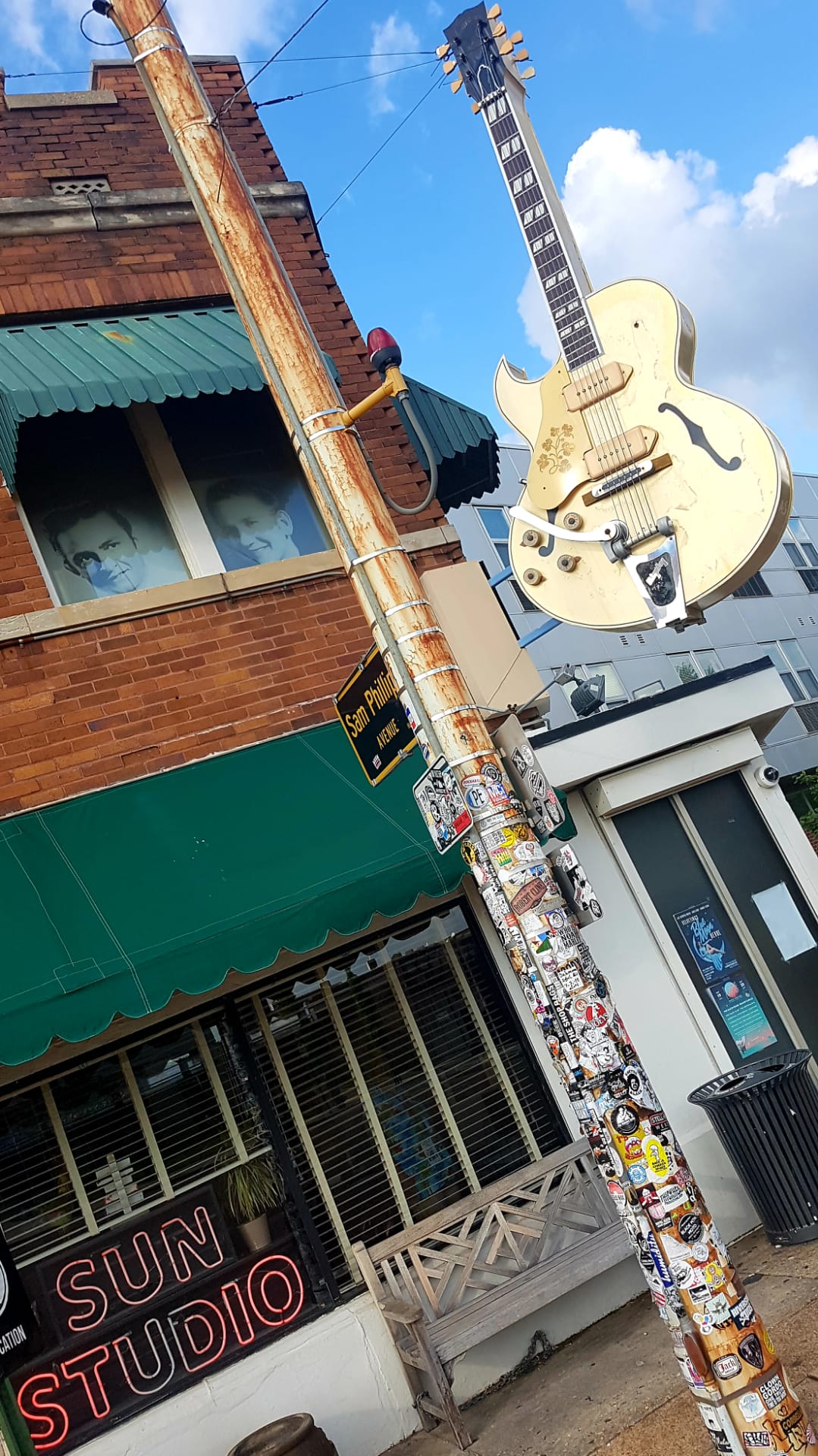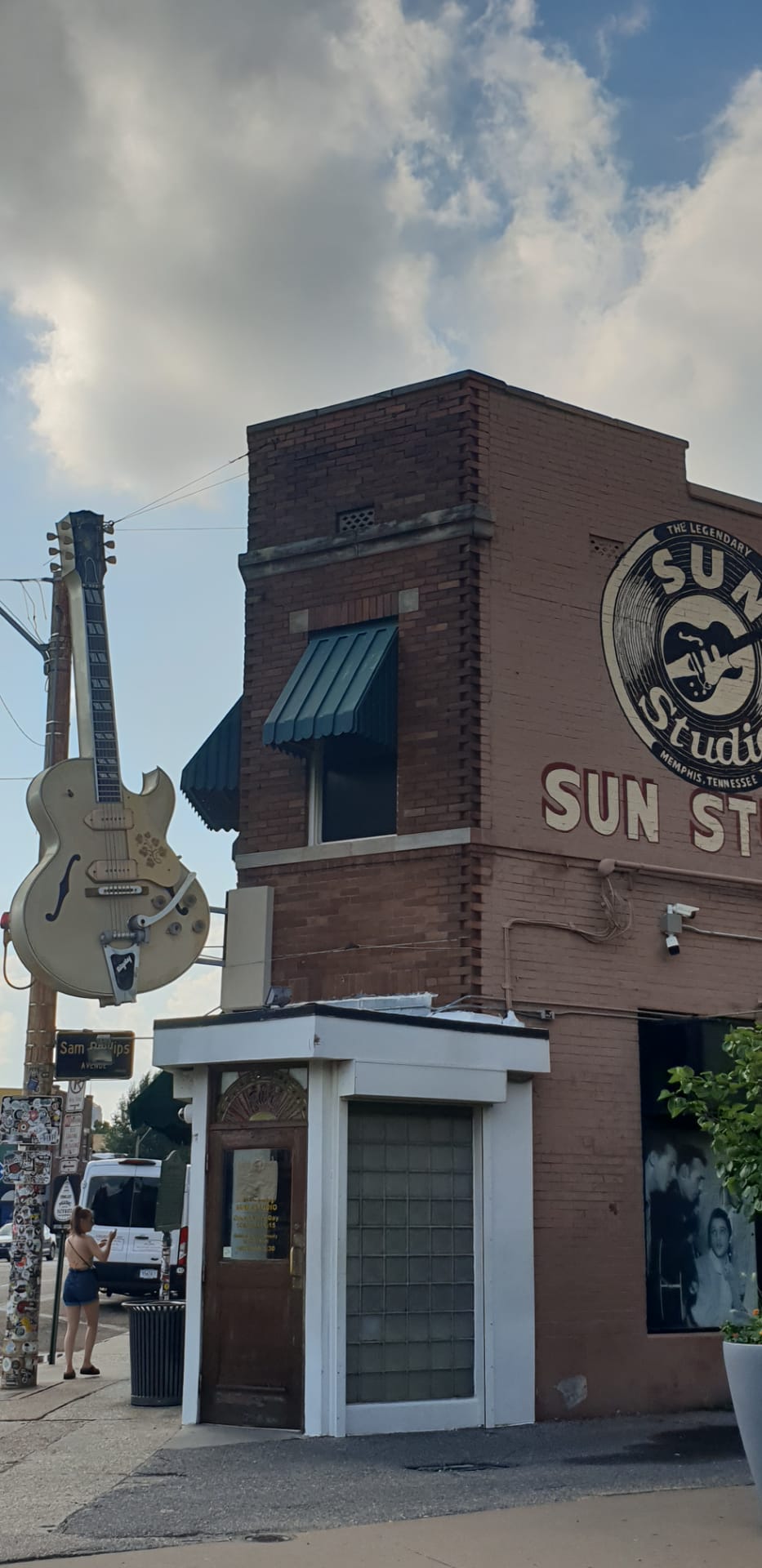 On repart sur la route du Blues en direction de Memphis, et les notes de la chanson ‘Sur la route de Memphis’ résonnent dans nos têtes en même temps que le paysage défile sous nos yeux ébahis. L’arrivée à Memphis est grandiose, par un immense pont métallique qui enjambe le Mississipi pour nous transporter directement au cœur de la cité du Blues. Direction le Sun Studio pour la visite du mythique label qui a enregistré les premiers titres du rock’n’roll dès les années 50 avec les plus grands artistes de l’époque, d’Elvis à Johnny Cash et de Jerry Lee Lewis à BB King … Un studio chargé d’histoires et tout est resté dans son jus, superbe et nostalgique, une visite très prenante.