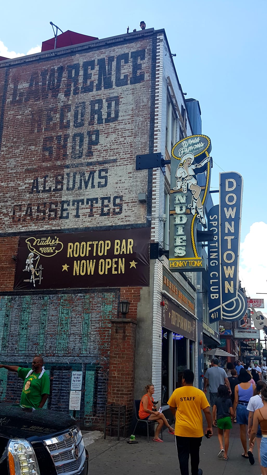 A peine remis de nos émotions que la folie Nashville nous accueille. La Music City porte bien son nom, The District, quartier du centre-ville, est rempli de Honky Tonk, de bars rock, de magasins de chapeaux et bottes western, on a atterri en plein cœur de la country musique, génial…