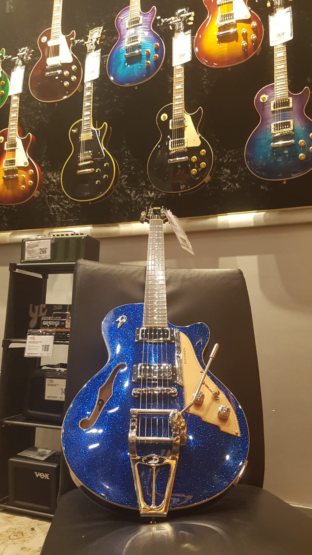 Gretsch propose aussi une nouvelle guitare ‘signature Brian Setzer’ qui en jette et la magnifique EVH, réédition de la fameuse gratte d’Eddie Van Halen.