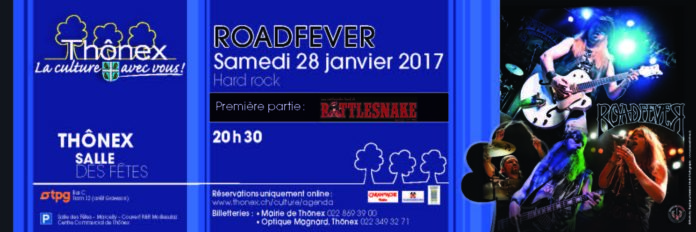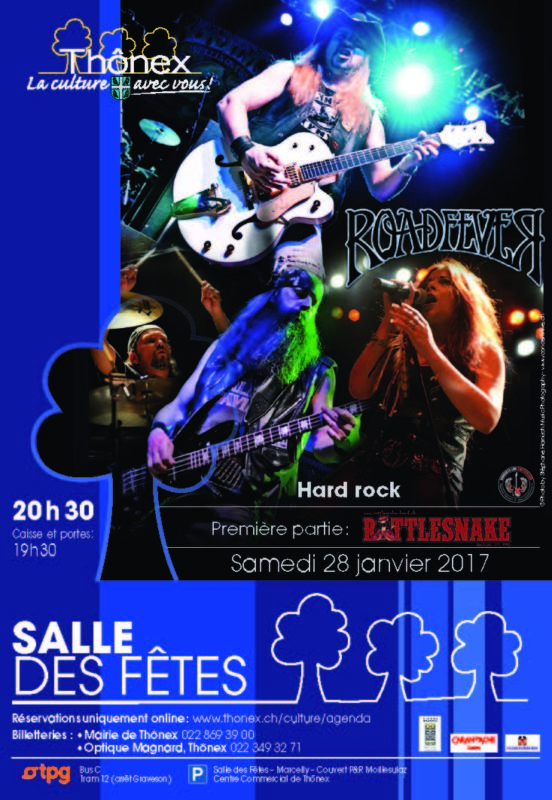 Réservez donc le samedi 28 janvier 2017 à partir de 19h30 à la Salle des Fêtes de Thônex pour un show avec la bande et Rattlesnake en première partie qui risque bien de vous donner la patate toute la soirée !