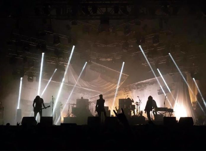 Parfaite intro pour Cult of Luna, qui récupèrent les gens encore hagards pour les propulser dans une galaxie touchant à la transcendance. Il est à noter que le basilic du diable était impliqué, mais mes notes disent (et je cite) : « j’ai quitté mon corps et fondu dans la musique », et je suis toujours d’accord avec cette version des faits. Les ingénieur.es tech du groupe sont absolument au top de leur forme et scellent la bulle, laissant place à une ambiance totalement enveloppante. Il y a, à tous les niveaux, une sophistication dans les détails, du backdrop à base de rideaux effondrés absorbant parfaitement les effets de lumière au choix des pédales d’effet des guitares, permettant d’injecter la texture d’une multitude d’instruments absents de scène. Le groupe est « fully possédé putain » (encore une fois, je cite), et lors du climax de In Awe Of, je me surprends à verser une larme, submergée par la puissance du son. De tout évidence, je ne suis pas la seule à avoir été émotionnellement investie ; un technicien son monte sur scène pour éteindre le dernier ampli et, instantanément, le public le hue, sans une seconde de battement. Les lumières s’allument et les gens sifflent encore, certainement un petit peu tendus d’avoir été ramenés à la réalité.