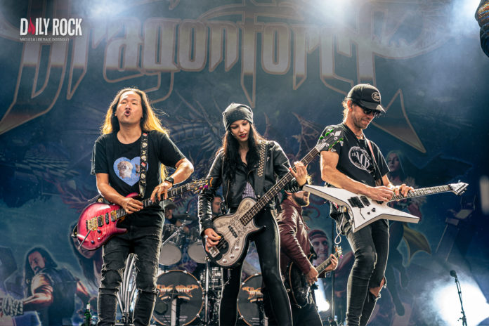 Tempos soutenus et refrains à reprendre en chœur. C’est la recette du power metal en général, mais surtout celle de Dragonforce. Des dragons ainsi que des jeux électroniques en décor de scène et c’est parti. Aucune surprise de la part des Anglais. Le toujours très démonstratif Herman Li fait le show en nous faisant étalage de sa technique et de sa virtuosité. Ce dernier s’exprime dans un très bon français pour nous remercier de notre présence. Mais c’est aussi dans la langue de Molière qu’il exprimera son petit mécontentement d’avoir un line check qui se fait entendre sur la scène parallèle. La sauce prend et le public, si trempe soit-il, répond présent. La reprise de My heart will go on (Céline Dion) fait toujours son petit effet tant celle-ci est improbable. Avec cette reprise, jouer sur la Iceberg stage aurait pu couler le groupe !