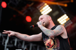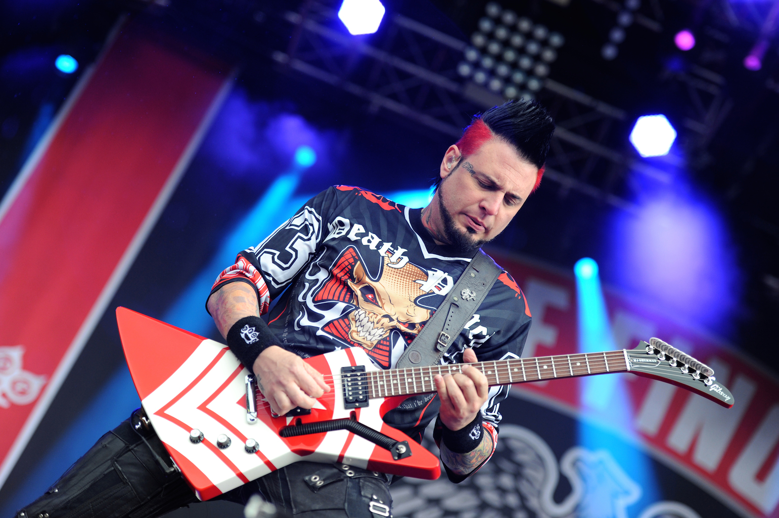 La journée du dimanche s’annonce la plus métal du week-end, avec les ‘vieux’ Judas Priest et Alice Cooper pour clôturer le festival. Les festivités commencent avec le groupe local Crown of Glory et leur hard rock. Malgré les efforts, ils semblent un peu perdus sur la grosse scène et n’arrivent pas à capter l’attention du public rassemblé devant la scène. Les choses changent d’emblée avec Five Finger Death Punch, un des groupes américain les plus en vue du moment. Le groupe est un concentré de puissance et de mélodie. Les interminables tournées autour du monde les ont transformés en une machine à concert solide et précise et malgré la pluie lors des premiers morceaux, le public apprécie beaucoup. Sympa aussi que le chanteur Ivan Moody se soit rappelé de leur premier concert en Suisse au Rohstofflager de Zürich devant 70 personnes ! Les Boss Hoss sont un groupe allemand à l’attention du grand public grâce au format TV ‘The Voice of Germany’ et leur interprétation de hits pop/rock comme ‘Toxic’ de Britney Spears ou ‘Hey Ya !’ de Outkast en version rock country. Je suis sûr que dans de bonnes conditions, ils seraient capables de créer une bonne atmosphère, mais cet après-midi, ils ont du mal à y arriver.