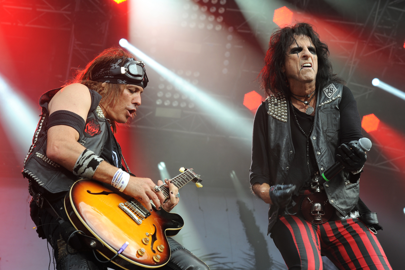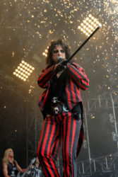 Le moment de Mr. Nice Guy, aka Alice Cooper arrive. Avec plus de 30 ans de carrière sur les épaules le sympathique chanteur américain est sans doute une des icônes du rock et un entertainer de race. Son hard rock de qualité accompagné par une série de prestations de style film d’horreur pour choquer le public, est toujours un plaisir à vivre en live. Vu le peu temps à dispo il n’y a pas trop de temps pour les expérimentations et malgré des morceaux plus récents trouvent la place dans le set, la plus part du show et basé sur ceux qui le public s’attend en premier… ‘No More Mr. Nice Guy’, ‘Under My Wheels’, ‘Billion Dollar Babies’, ‘Hey Stoopid’, ‘Welcome to my nightmare’… Les musiciens de Alice Cooper sont toujours  un des raisons de la qualité de ses concerts mais une note de mérite particulière va à la nouvelle guitariste Nita Strauss, qui a pris la place de Orianthi. Avec des qualités techniques qui n’ont rien à envier à n’import quel mec, la jolie blonde avec son stage-act sauvage et une charge érotique énorme, a laissé beaucoup d’hommes présents sur le carreau! Ce n’est pas un concert d’Alice sans qu’il se fasse décapiter pendant ‘I love the Dead’ et donc voilà que nous sommes satisfait. Mais il vient ressuscité pour terminer le concert avec ‘I’m eighteen’ et ‘Poison’. Mais non, ce n’est pas encore terminé, aussi l’hymne des étudiant américains ‘School’s out’ doit être joué, cette fois avec 4 (??) guitares, vu que Jason Hook, de 5FDP et ex-membre du groupe de Alice, monte sur scène pour la grande fête finale !