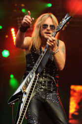 Judas Priest a la tâche difficile de répéter la prestation de Alice Cooper. On demarre avec ‘Dragonaut’ issu du dernier opus ‘Redeemer of Souls’ suivi par l’immortel ‘Metal God’. Rob Halford, le ‘Metal God’ lui même, et sans doute charismatique mais se révèle très passif sur scène. Pour compenser, il y le ‘nouveau’ guitariste Richie Faulkner (bon, il est déjà là depuis quatre ans) qui n’arrête à aucun moment de poser à droite et à gauche. Rob donne une bonne prestation vocale, même si certaines notes plus hautes sont visiblement difficilement accessibles. Le groupe a produit autant de perles de metal que n’importe quelle set-list serait parfaite, mais les morceaux comme ‘Victim of Changes’, ‘Beyond the Realms of Death’ ou ‘Breaking the Law’ sont toujours un plaisir à revoir en live. J’ai quand même de la peine avec le son, qui ne semble pas avoir l’impact que j’aurais voulu, mais peut-être est-ce à cause de ma position dans le pit. Après avoir fini la première partie du concert avec ‘Hell Bent for Leather’, ‘Electric Eye’ et ‘You’ve Got Anther Thing Coming’ font office de rappel. Mais personne ne veut les laisser partir et tout le monde sais qu’il y a encore deux morceaux à jouer. Et voilà que ‘Painkiller’ et ‘Living After Midnight’ arrêtent le concert. Sur la première, les difficultés vocales de Rob sont évidentes mais tout le monde semble avoir tout oublié avec la grande fête finale. Si vous voulez les revoir, ils seront de retour sur Genève en novembre!