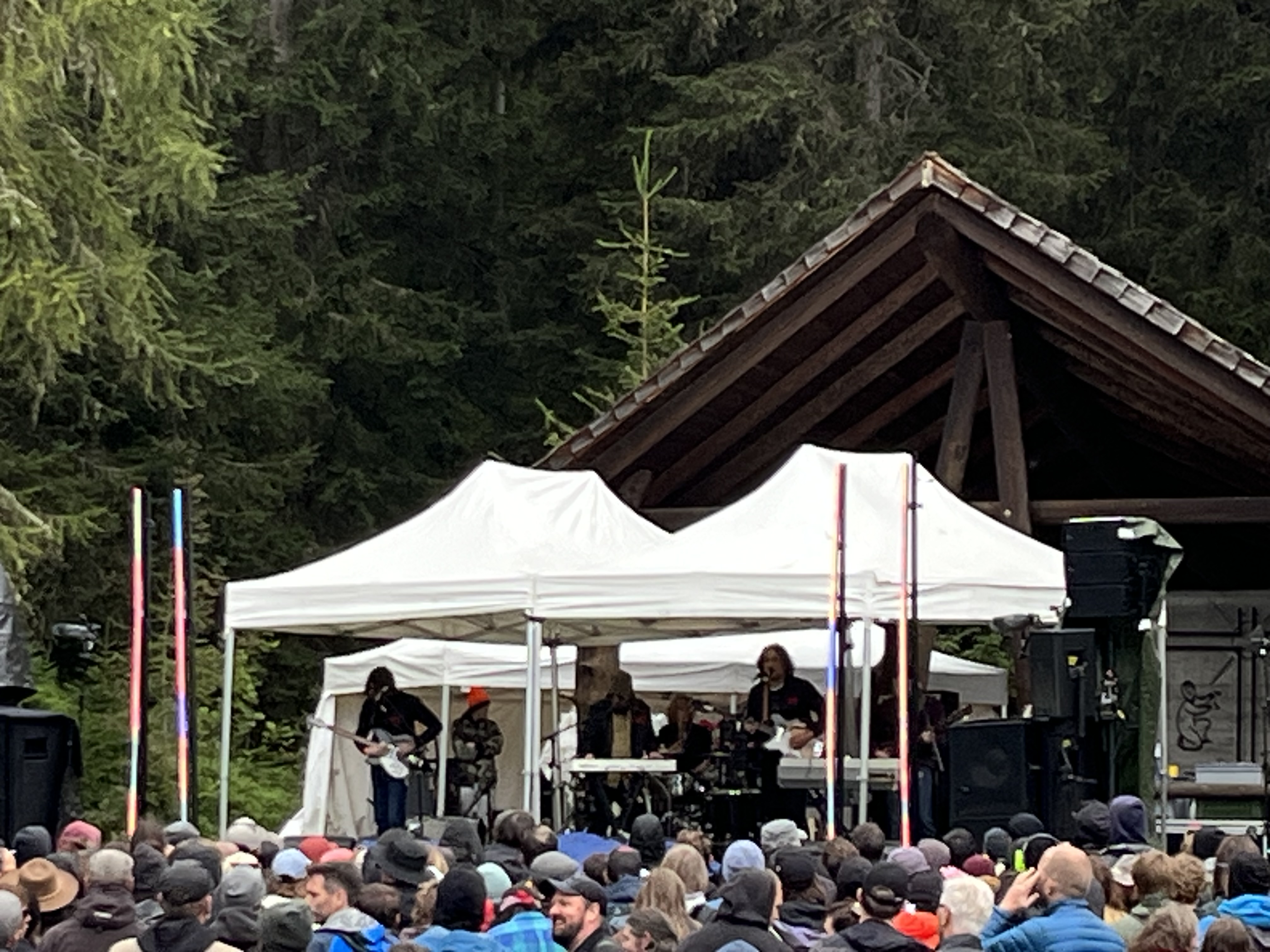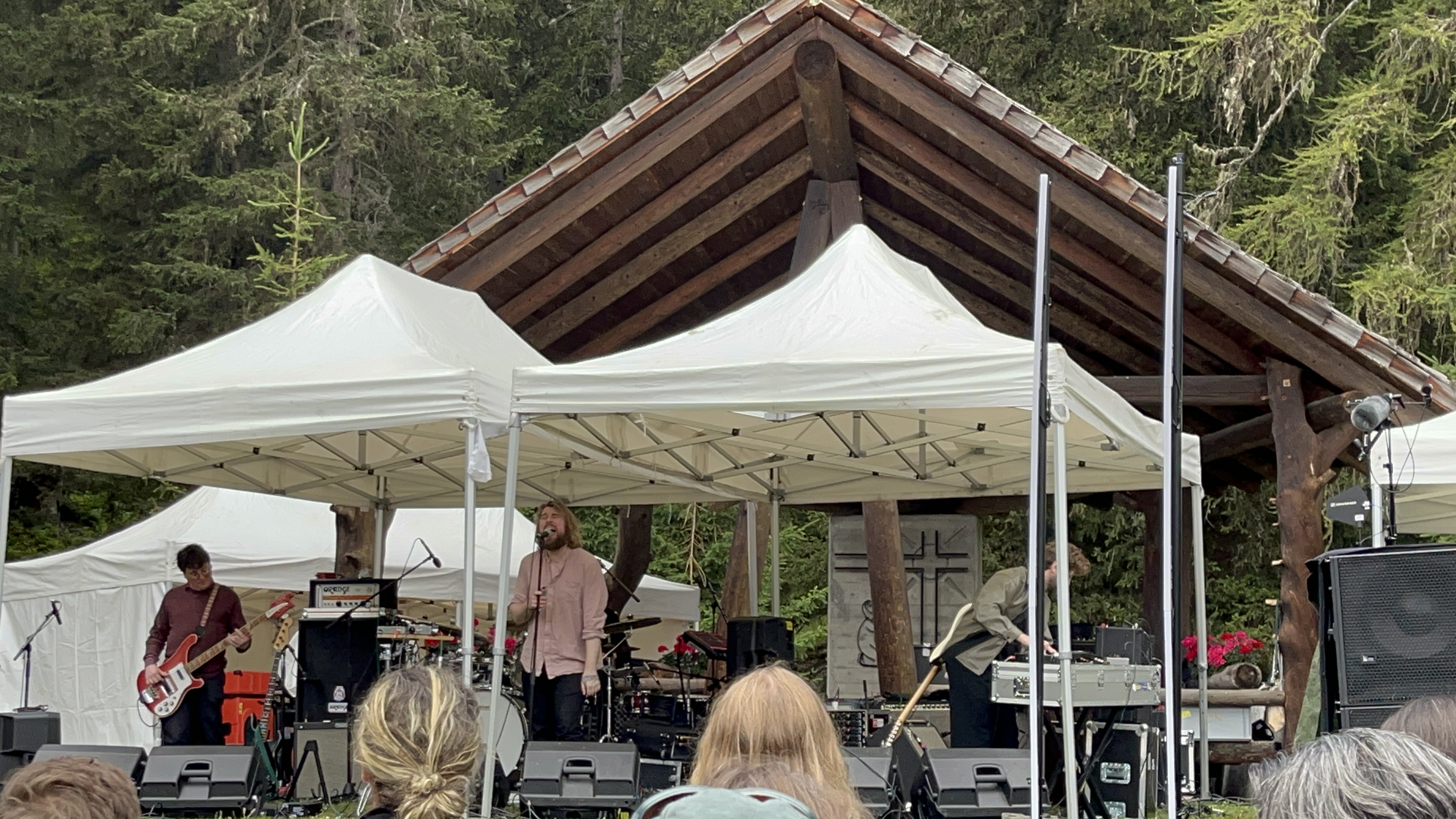 Météo incertaine et frisquette pour cette deuxième journée Rocklette aux Mayens-de-Bruson. Les nuages s’accrochent aux montagnes, la pluie n’est pas loin, mais les dieux du rock seront finalement cléments avec leurs fidèles. Parking à la gare du Châble, télécabine jusqu’à Moay qui réserve une vue imprenable sur Verbier, une dizaine de minutes à pied dans ce versant sauvage du Val de Bagnes et nous voici au Couvert de Goly. Ce site magnifique se prête idéalement à des concerts en petite assemblée. Nous arrivons à l’heure de l’apéro – ce qui n’est pas pour nous déplaire (fendant de 10 caves différentes et autres spécialités) – le temps aussi de savourer quelques bonnes raclettes (vache et brebis) avant le début des festivités musicales.