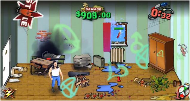 Vous incarnez un rockeur bedonnant en pleine tournée, et visitez 25 chambres d’hôtel : classe, miteuses, qu’importe : le but est de les massacrer en redoublant d’imagination. Vous aurez donc moyen d’enflammer votre lit à coup de solo de guitare, vous jeter par la fenêtre, pousser des poulettes dans des piscines (ça leur apprendra) ou encore fabriquer des explosifs à envoyer dans votre garde-robe (ça lui apprendra aussi)!