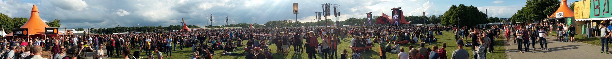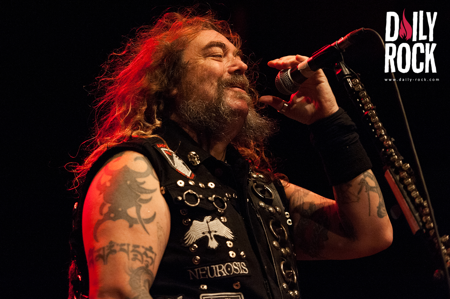 Le premier concert vaguement bourrin de la journée était proposé par Bring Me The Horizon, que je loupe en arrivant trop tard – c’est que les accréditations et l’installation au camping, ça ne se bâcle pas en trois secondes, voyez-vous. On se console avec les dieux vivants du thrash :