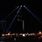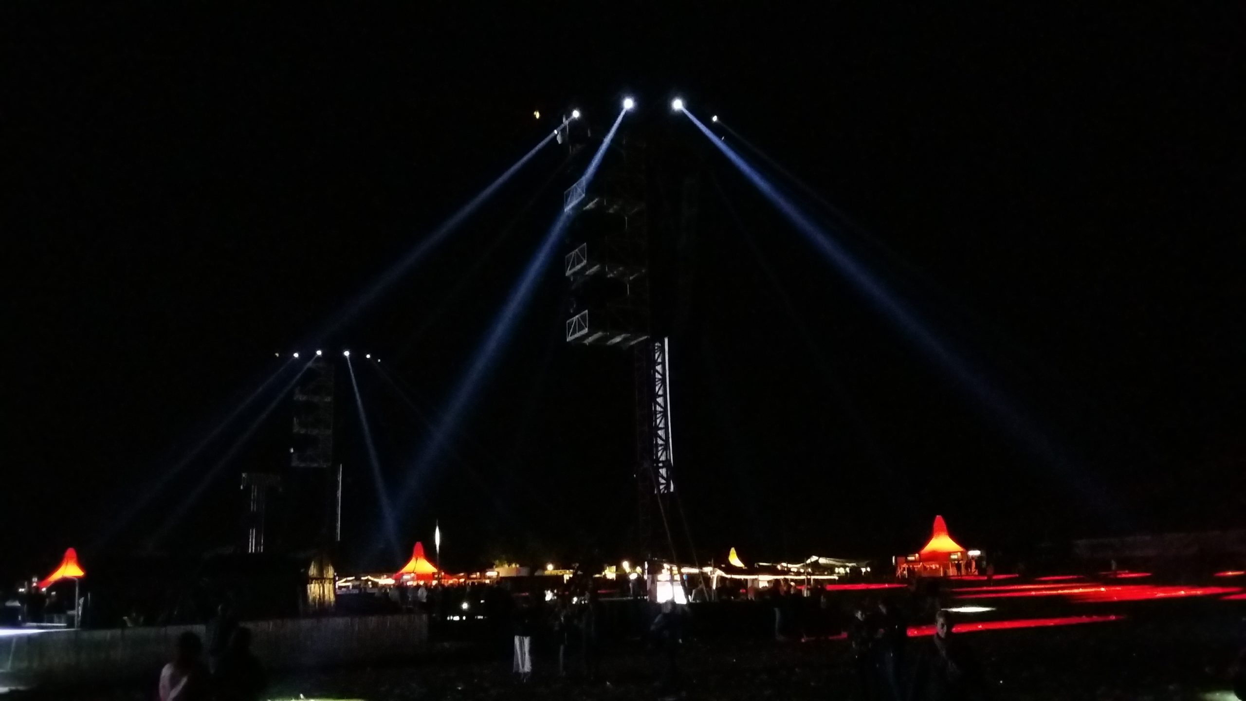 Sous l’ample tente Arena, une foule compacte piétine le sable gris depuis de longues minutes, produisant un son d’océan furieux. « High Energy Concert ! » avertissent comiquement les panneaux lumineux, nous faisant savoir par ailleurs que le mosh ça va, mais le crowd surfing, bonjour les dégâts… Le chapiteau style Knie est décoré au plafond d’oiseaux blancs stylisés, prémices ironiques aux sons guerriers à venir. Derrière la scène, apparaît en noir et blanc une tronche de Christ plutôt mal en point. Dans le public plutôt jeune et rigolard, fort peu de métaleux archétypiques. Ca s’impatiente :« Slayer ! Slayer ! » Résonne alors, mais oui, Thunderstruck d’AC/DC, repris par la foule. Les silhouettes emblématiques d’Araya et King se détachent sur fond rouge. Un Gary Holt à rouflaquettes de Wolverine toxico pose d’emblée l’ambiance avec son ticheurte Kill the Kardashians et sa gratte rendant hommage à son regretté prédécesseur Jeff Hanneman. C’est Repentless, seul vrai bon titre d’un dernier album très dispensable, qui ouvre les réjouissantes hostilités. Puis c’est God Hates Us All qui pulvérise l’assistance, Araya encore plutôt tranquille sur ce titre qui requerrait du poumon plus radical. Un verre d’eau s’envole et atterrit dans les mains de mon voisin interloqué, m’éclaboussant au passage – faites que ce soit vraiment de l’eau, par pitié. Au fil de la prestation carrée et réglée comme un orgue de barbarie, la foule s’agite de plus en plus, les pogos contaminant jusqu’aux derniers rangs. Sur l’écran balayant la foule, un couple adorable, surtout elle avec sa couronne de fleurs décorant sa blondeur platine, s’embrassent hilares sous l’œil de la caméra, entourés de déguisements de pikachus et de fées à baguette et tutu, parfaitement idiots et décontractés. Le set sera des plus classiques, avec peu de titres nouveaux et beaucoup d’incontournables comme War Ensemble, Reign in Blood, Angel of Death, Dead Skin Mask, Mandatory Suicide. Slayer peut rater un album, la machine est trop rôdée pour rater un concert, en voici un énième exemple.