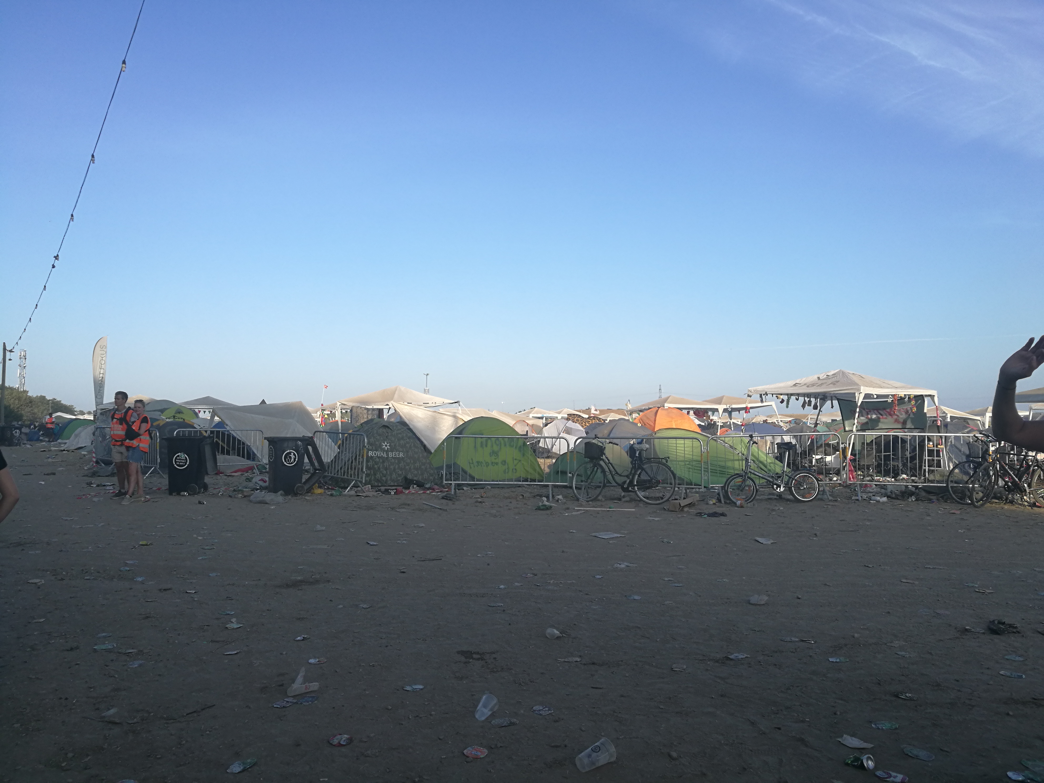 Cet environnement hostile est part intégrante des festivités. Comme dit dans les reviews des jours précédents, mieux vaut la poussière que la pluie. On se demande tout de même pourquoi un système d’arrosage n’est pas mis en place. Cela vient probablement du fait que le festival se veut écologiquement responsable, d’où les 90% de nourriture bio dans les stands de bouffe. Mais alors, il faudrait songer à trouver une solution pour la gestion des déchets, car même si l’enceinte du festival est nettoyée en continu par quelques uns des 30’000 bénévoles, les verres en plastiques, les canettes, les chaises de camping et autres objets fantasques jonchent le sol. C’est quand même étrange, quand on connait l’importance que les organisateurs accordent à l’environnement. Cela ne nous enlève toutefois pas de motivation, et nous sommes prêts pour entamer ce quatrième et dernier jour !