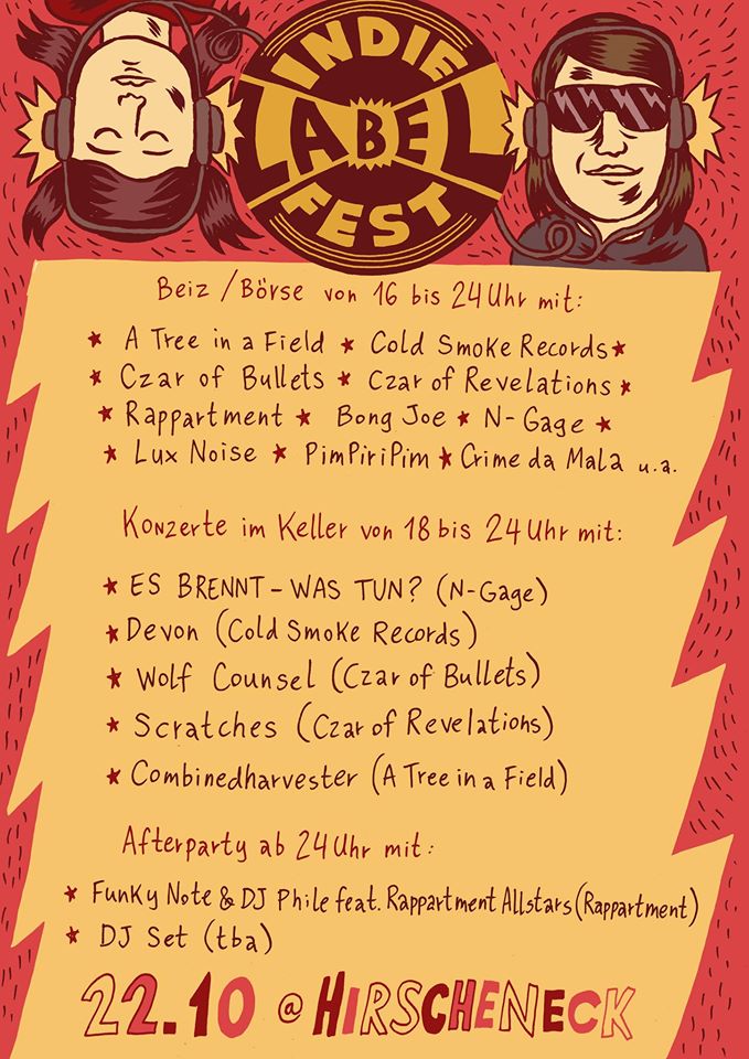 Six labels indépendants s’unissent ce soir pour le Indie Label Fest. Regroupant cinq groupes et un DJ, il aura lieu au pub Hirscheneck et les concerts commenceront à 18 heures. La bourse aux disques des labels débutera à 16 heures.