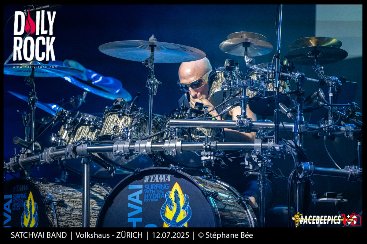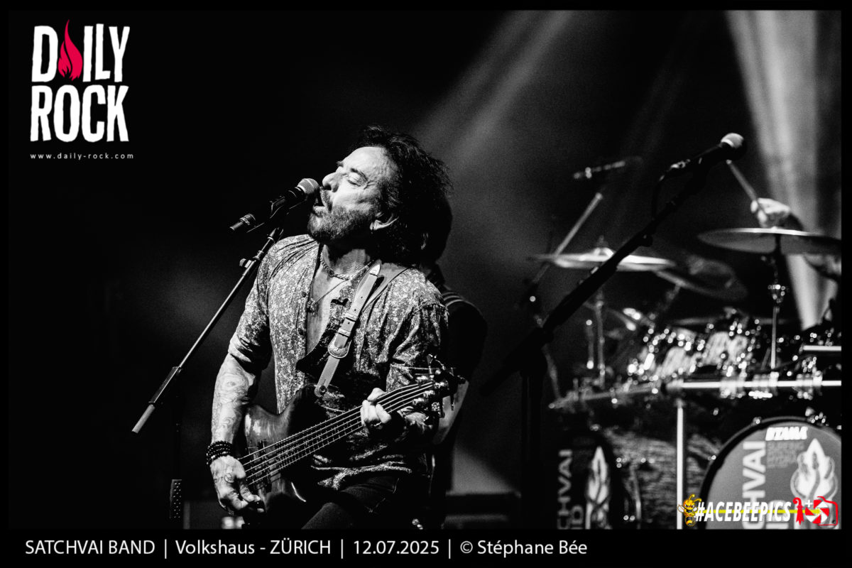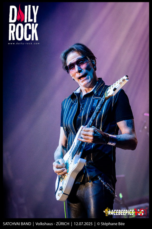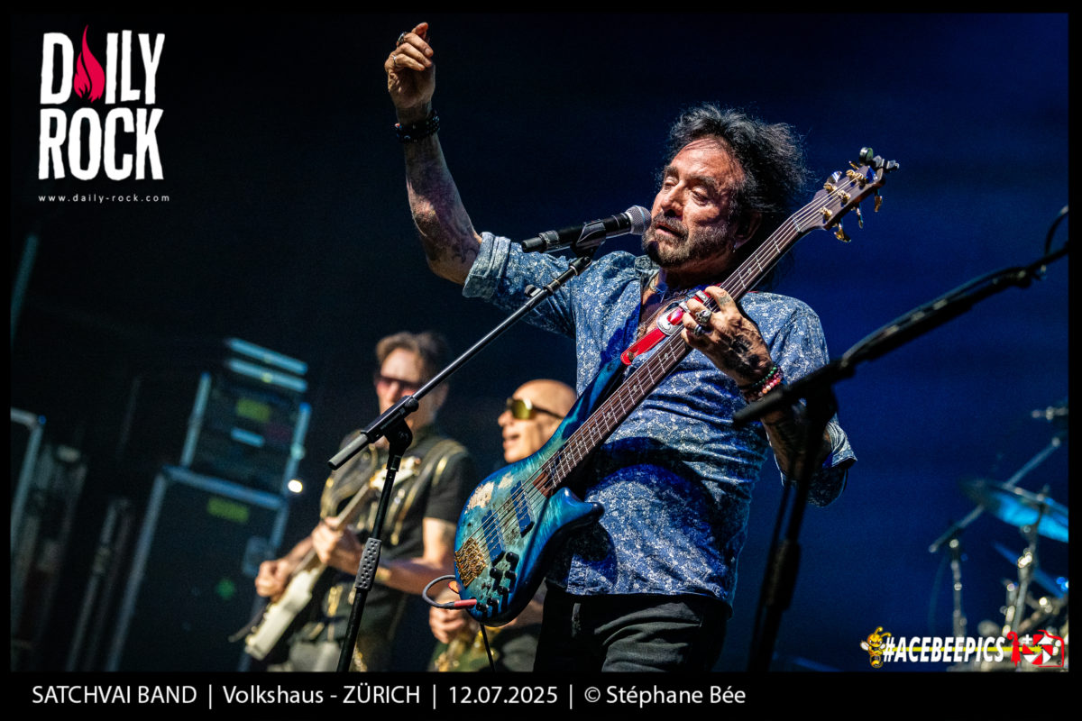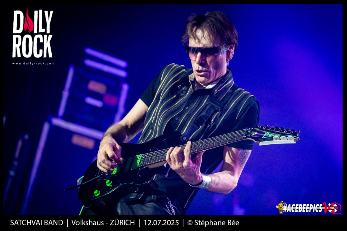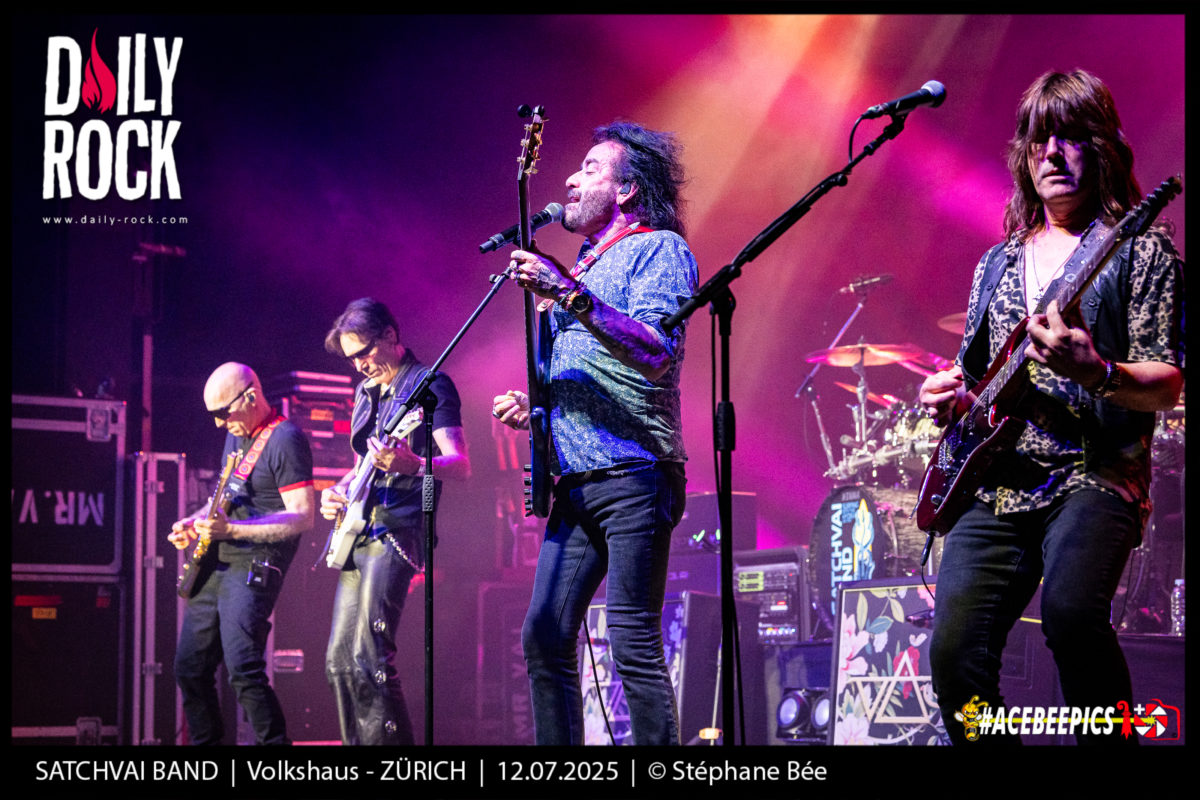 Près de 50 ans de carrière chacun, une amitié tout aussi ancienne, Joe Satriani et Steve Vai ont conjugué leur talent pour régaler leur vaste fan base en initiant le projet SATCHVAI Band. A leurs côtés, de fines gâchettes et vieux renards, Marco Mendoza à la basse et au chant – Kenny Aronoff à la batterie – Pete Thorn à la guitare. Le supergroupe passait par le Volkshaus de Zurich dans le cadre du « Surfing With the Hydra 2025 Tour », une semaine avant de se produire au festival Guitare-en-Scène.