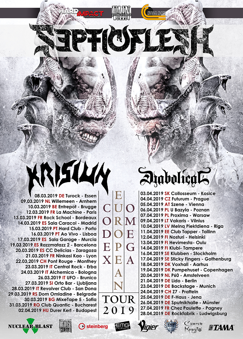Les Brésiliens du groupe de death metal Krisiun et les Suédois de Diabolical assureront leur première partie lors de cette tournée. Celle-ci a commencé à Essen en Allemagne le 8 mars et se terminera à Ludwigsburg le 28 avril.