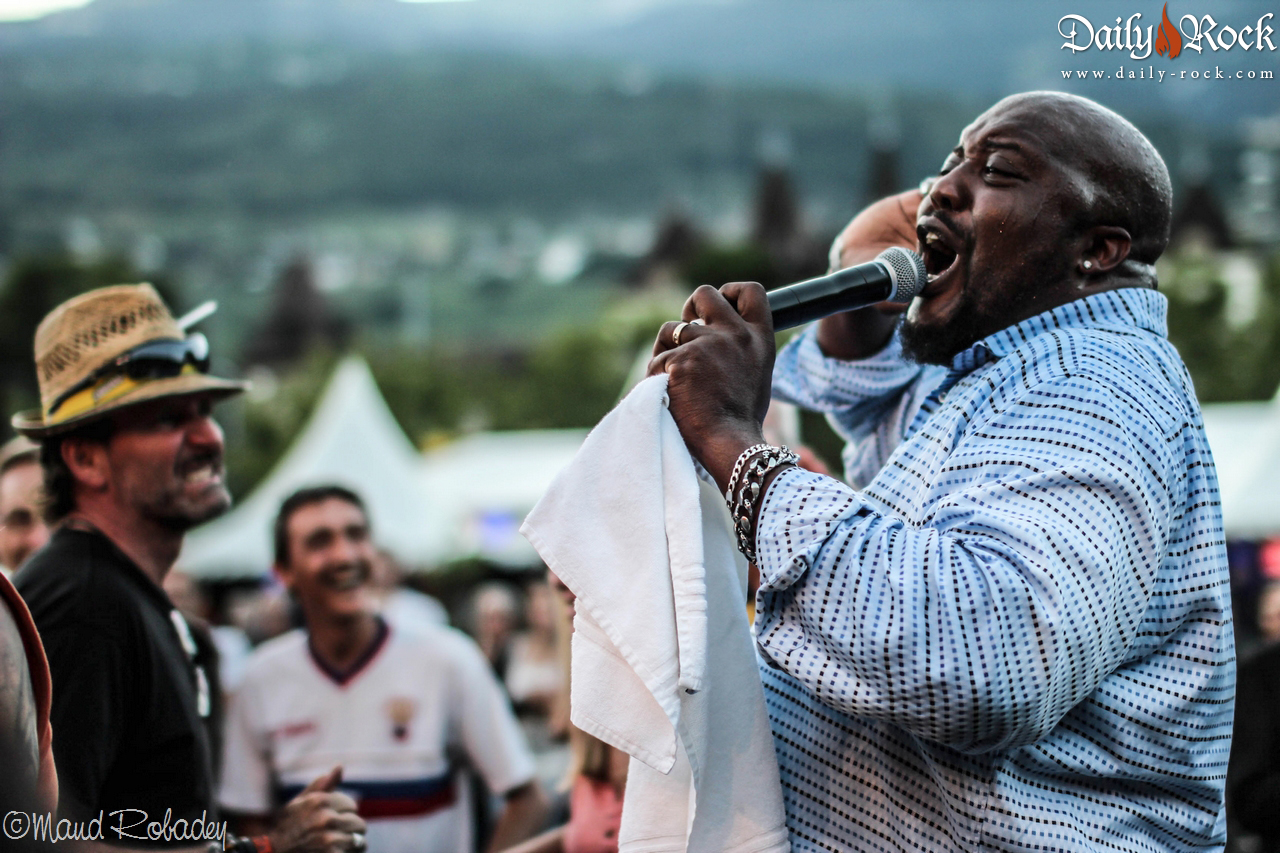 Y suit Sugaray Rayford, dont le nom correspond très bien ! Malgré leur annonce en début de concert qu’ils étaient épuisés par un long voyage, dès les premières notes ils ont réussi à faire bouger le public depuis les tentes ombragées au devant de scène en plein soleil. Le chanteur au timbre incroyable se déhanche sur scène, jusqu’au moment où le public ne bouge pas assez à son opinion. Il sort de scène, cause un instant de panique parmi la sécurité, et s’élance dans le public. Moment mémorable de cette édition du Sierre Blues !