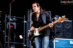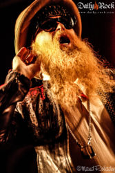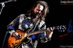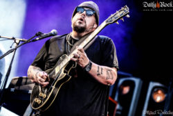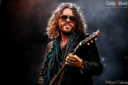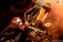 Le créneau entre les concerts est court, nous allons vite nous rassasier et retrouvons sur scène le groupe ayant attiré les foules aujourd’hui : il s’agit de Supersonic Blues Machine, accompagnés par l’emblématique Billy F. Gibbons. Celui-ci retourne au Sierre Blues Festival, seul, après le véritable succès du concert de ZZ TOP lors de l’édition précédente. Par contre, attention : il s’agit bien d’un Featuring de l’artiste. Supersonic Blues Machine, c’est en premier lieu Fabrizio Grossi, producteur et multi-talent à la basse, Lace Lopez à la guitare et chant ainsi que Kenny Aronoff aux fûts. Pour soutenir leur prestation sur scène, ils étaient soutenus par d’autres musiciens et un chœur. Leur blues moderne fonctionne bien, revitalisant le public après cette journée estivale et montrant tour à tour -l’incroyable talent réuni en ce même lieu. Avons-nous peut-être oublié quelque chose ? Oui ; Billy F. Gibbons apparaît sur scène vers le dernier quart du set, jouant les titres les plus emblématiques de ZZ TOP. C’est au moment bien précis qu’une des étoiles du Texas fait son entrée que l’on s’en rend compte ; les gens se sont déplacés pour lui et n’hésitent pas à le montrer.