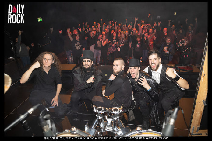ConcertsPhotos SILVER DUST – Daily Rock Festival – 9 février 2023 By Jacques Apothéloz - 12 février 2023 0 FacebookTwitterWhatsAppLinkedinEmailTelegram Retour en images sur le concert de Silver Dust au premier Daily Rock Festival au Groove, le 9 février 2023 grâce à Jacques Apothéloz.