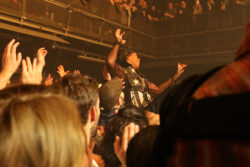 De la fougue, du punch, de la répartie, de la maîtrise, un grain de folie, le tout passé au shaker pendant près de deux heures, le plaisir a été intense pour le public des Docks et ceci dès la première minute du concert. Bondissant tel un boxeur insaisissable, comme prenant ses fans à la gorge, Skin a placé immédiatement la barre très haut, forçant ses comparses a donner le meilleur d’eux-mêmes. Et ils le lui ont bien rendu avec un Ace lançant des salves incendiaires de sa six cordes et un Mark Richardson tendant le rythme titre après titre. De son côté assurant une ligne de basse sans failles, Cass avait pris le parti de cabotiner, lançant œillade sur œillade aux premiers rangs. La féline chanteuse, ainsi à l’aise s’est mise à rugir encore plus fort, et n’a pas tardé à plonger dans le public, à l’utiliser comme estrade, comme punching-ball, à lui marcher littéralement dessus, avant de se glisser en son sein et à le pousser à s’asseoir à ses genoux dans une communion finale intense. Le rock de Skunk Anansie, fiévreux, acéré, n’a jamais montré le moindre signe de faiblesse, même lorsqu’au moment du rappel les girls de Bones, le groupe d’ouverture, se sont glissées aux côtés des musiciens pour un ‘100 Ways to be Good Girl’ à douze cordes. Mieux, en alternant titres récents aux saveurs subtilement électro et uppercuts anciens salement maîtrisés, jusqu’à la dernière note le combo a fait sentir aux Docks l’haleine puissante du félin dans son cou.