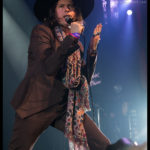 Myles Kennedy, dont j’avoue ne pas être le plus grand fan, a fait une superbe prestation. Il a été bien secondé sur quelques titres par Todd le bassiste, notamment sur ‘We’re All Gonna Die‘ en milieu de set. C’est finalement sur un titre plus calme, ‘The One You Love Is Gone‘ que j’ai le plus apprécié la voix de Myles et surtout le jeu de guitare de Slash qui avait sorti la double manche. Un jeu tout en finesse qui démontrait bien que jouer vite n’est pas toujours la bonne solution. Le titre suivant aura droit à un solo de guitare du maître. Quelle claque de l’homme au chapeau impeccable du début à la fin du concert. Et dire qu’il joue (presque) à l’aveugle avec ses cheveux qui recouvrent ses lunettes de soleil, sans parler de son pantalon en cuir en pleine canicule.