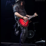 Le Strav’ est bien rempli lorsque Slash et son groupe apparaissent sur scène. Cela démarre directement très fort avec ‘Call Of The Wild‘. Les titres s’enchaînent pied au plancher. Chaque musicien est très mobile, ce qui permet à chaque spectateur de voir tout le monde de près. Voir Slash et sa mythique Les Paul à portée de bras, cela reste irréel pour ceux qui comme moi avaient 13-14 ans quand les Guns étaient le plus grand groupe du monde aux début des années 90 à la sortie du double album ‘Use Your Illusions‘.